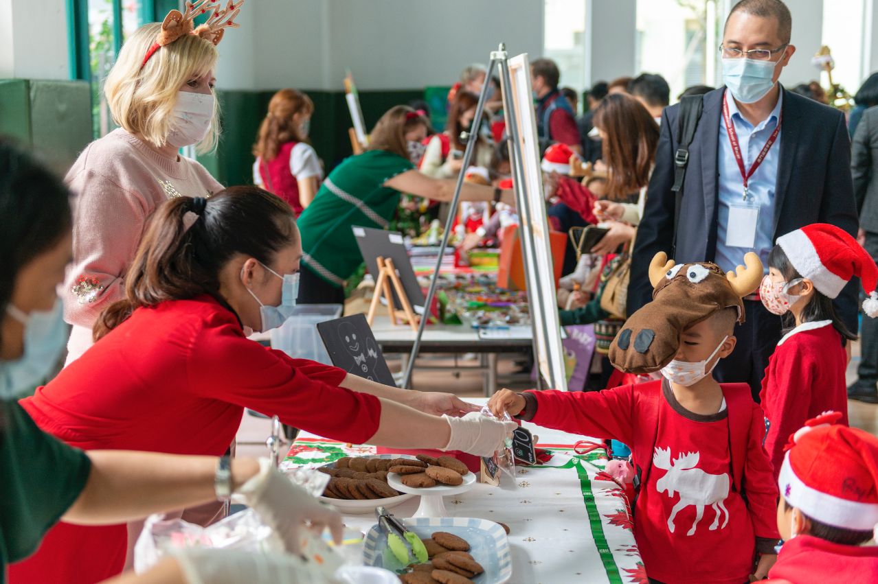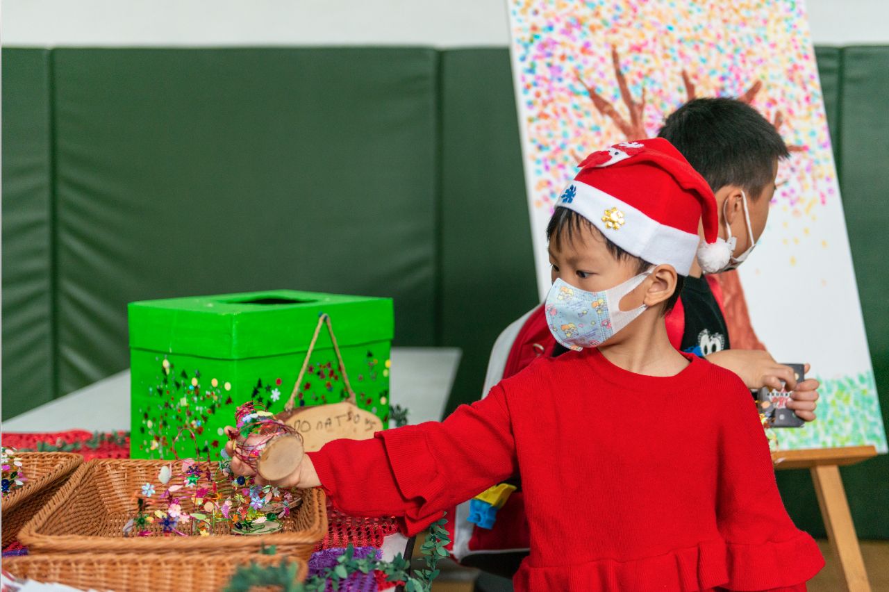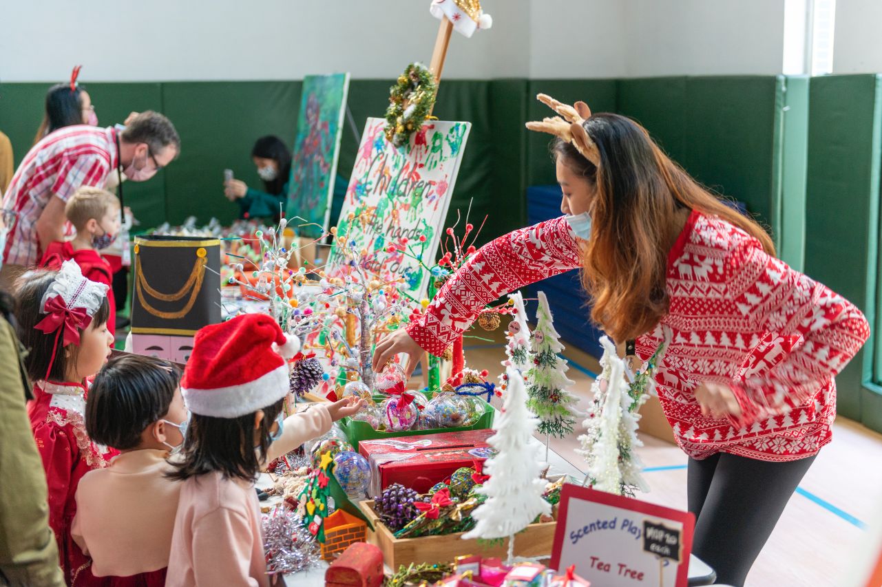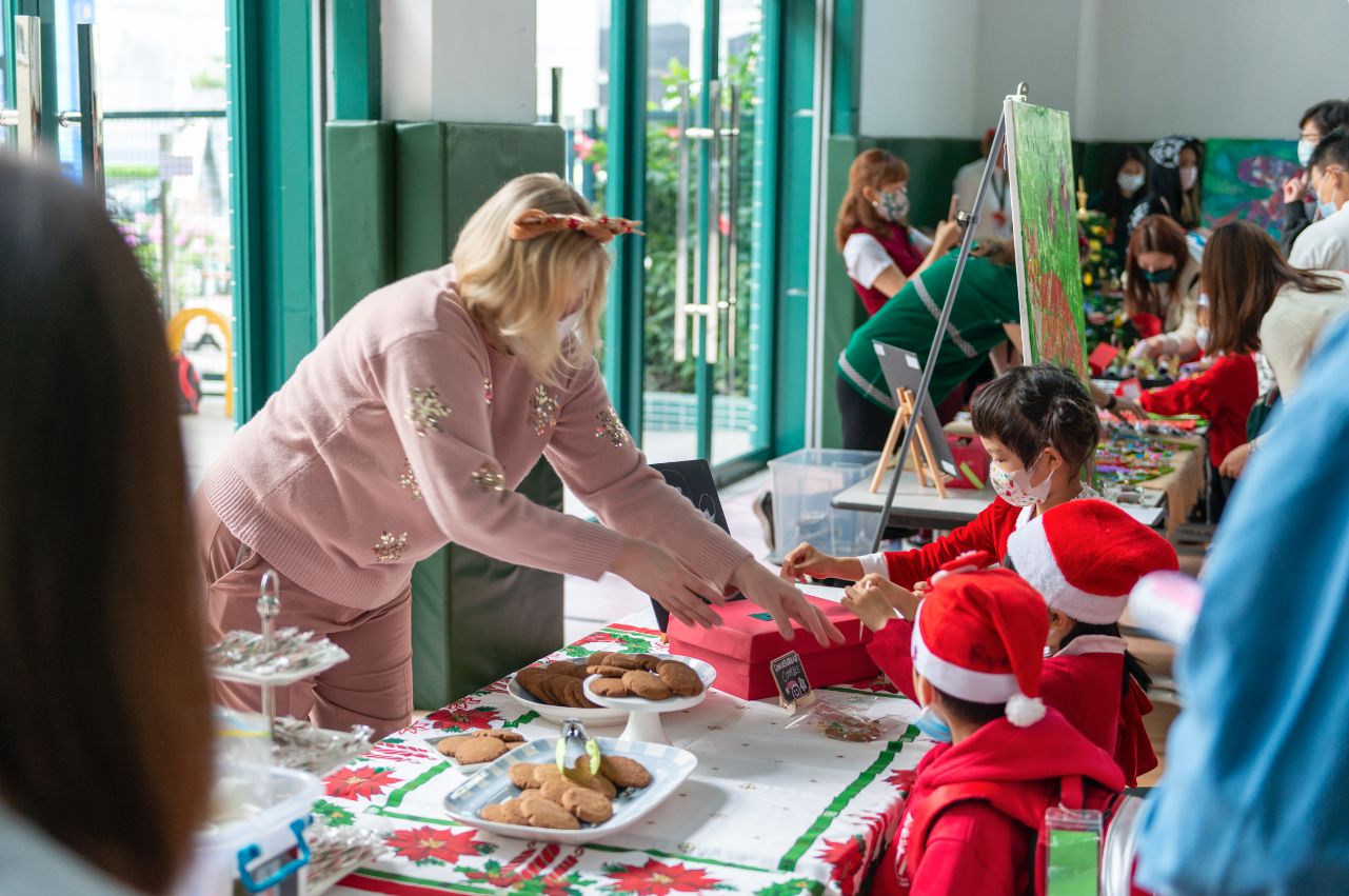 Unique Christmas gifts made by our kindergarten students, included Christmas tree decorations, gift wrapping paper and greeting card. There were all sorts of other seasonal goodies catching the eyes of our parents as they made their rounds at each table. Each class also had a big, colourful canvas that was up to be auctioned off, painted by the tiny hands of our Kindy students with the help of their high school peers.