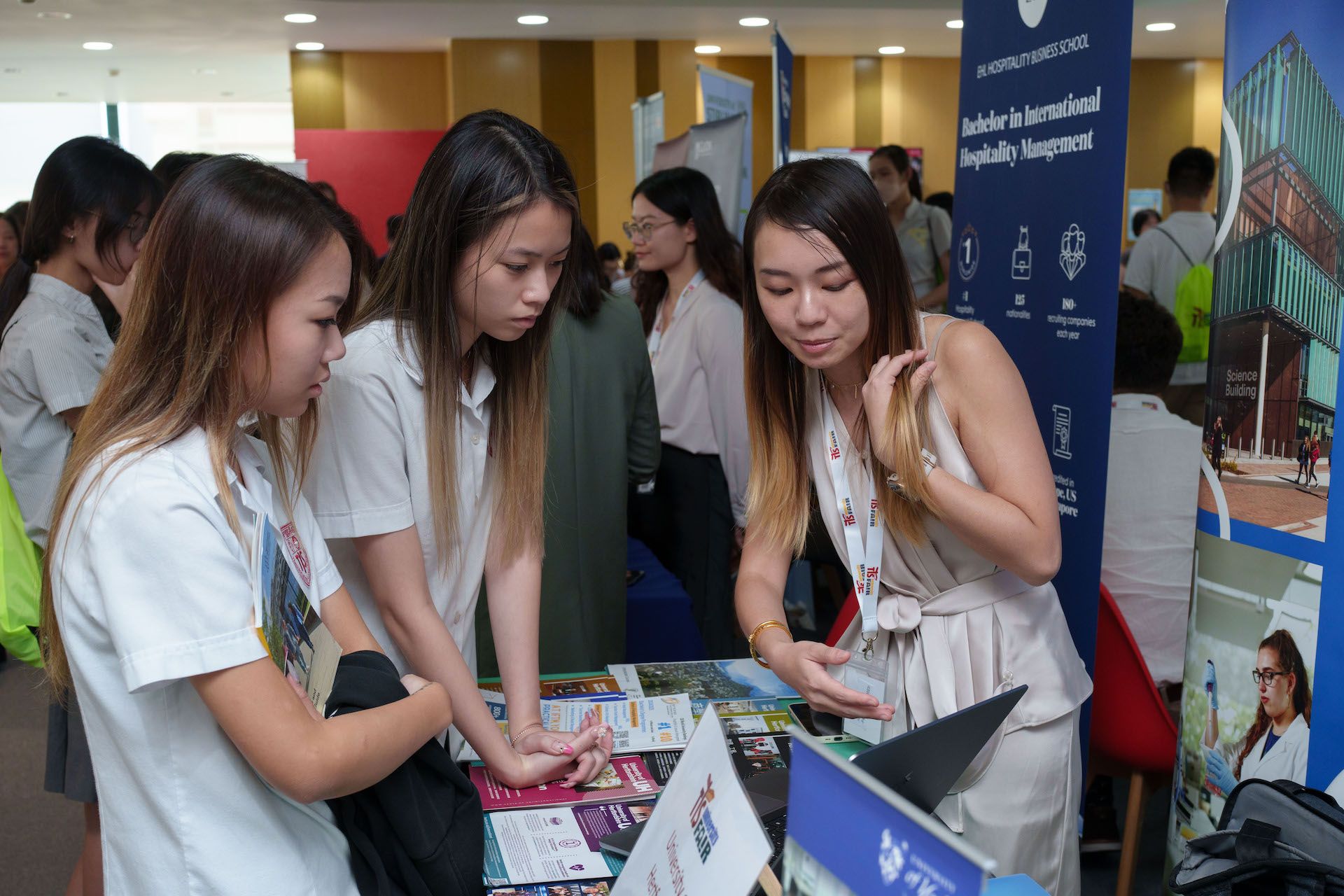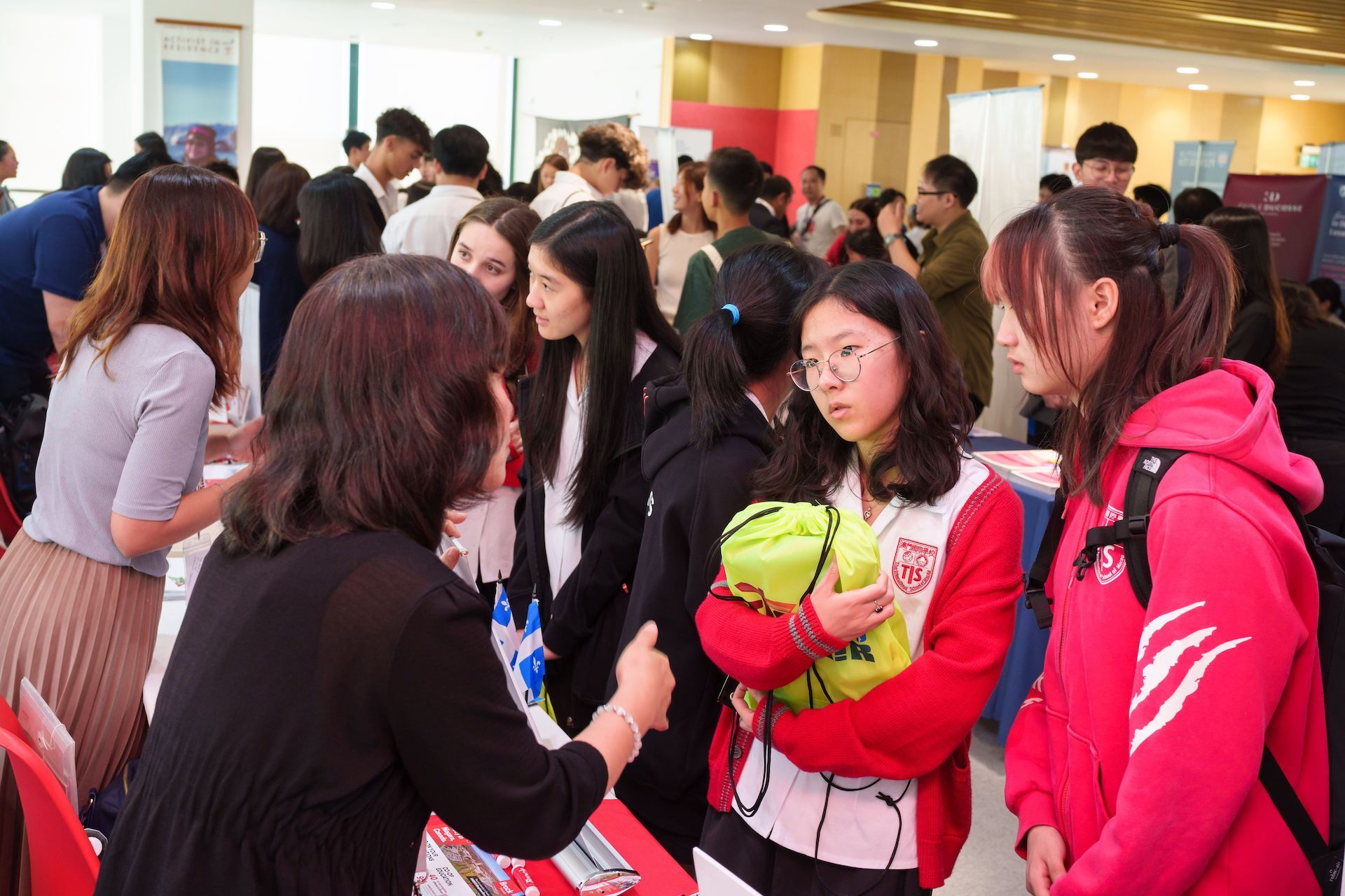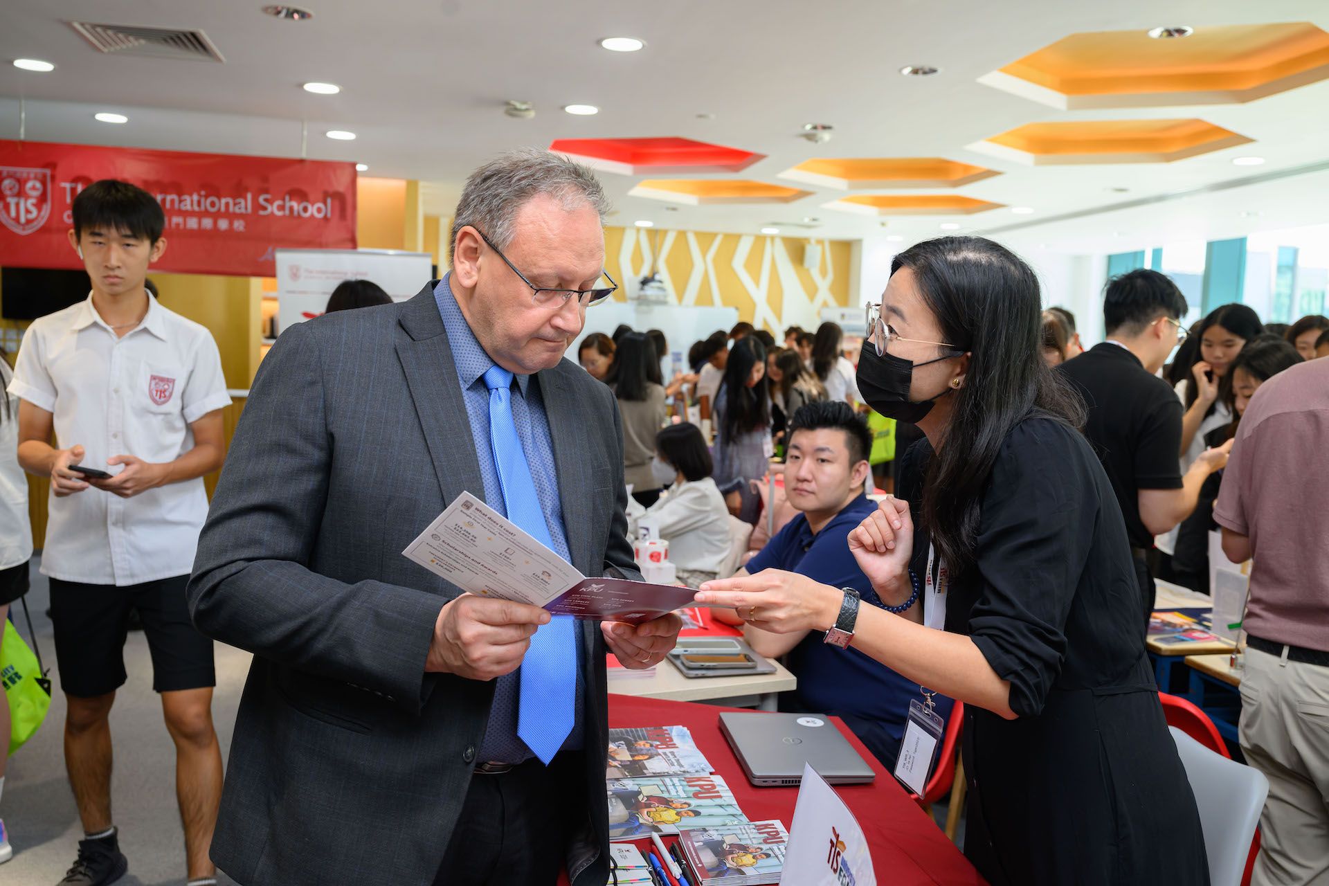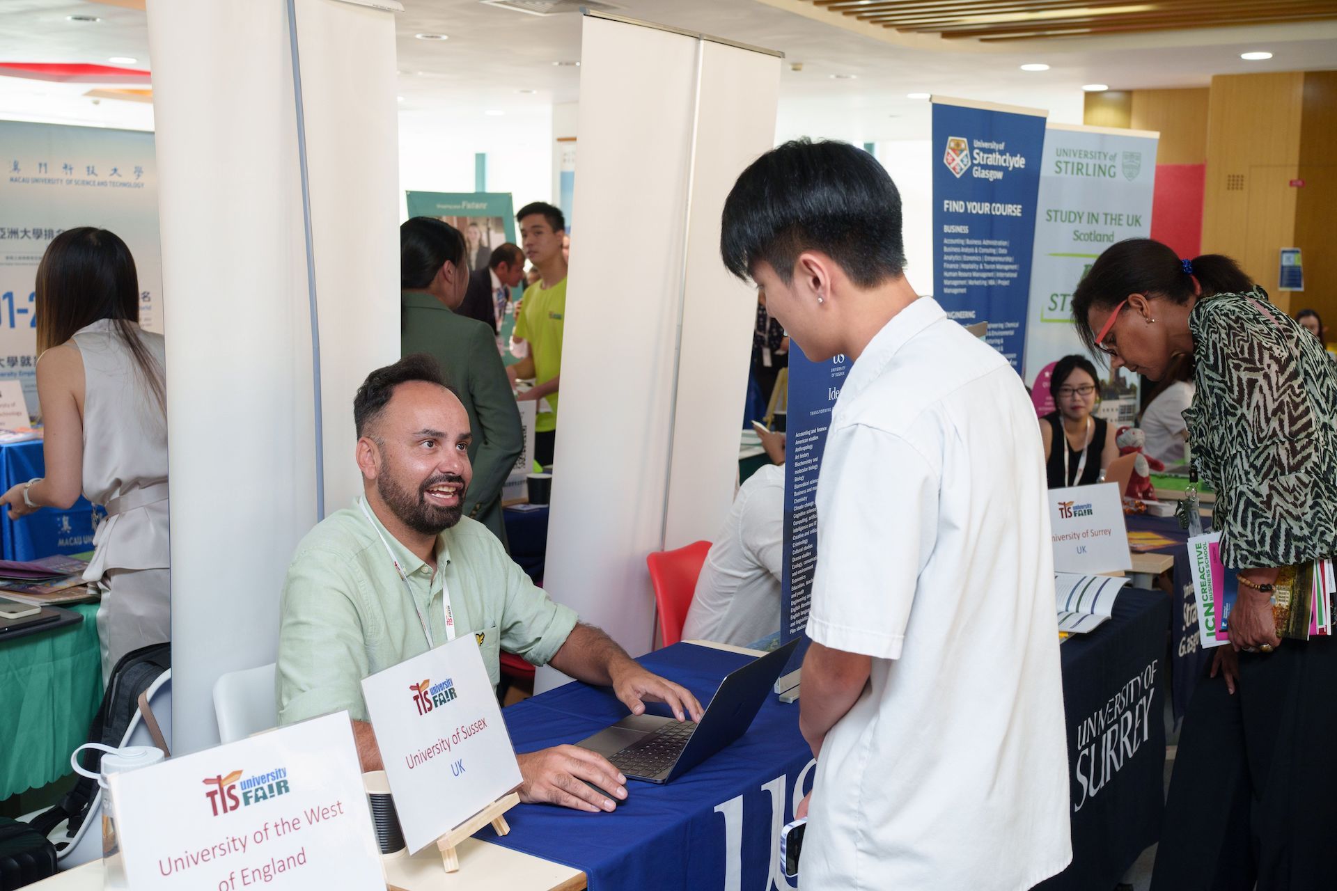 This year, the TIS University Fair included a diverse lineup of universities hailing from the United Kingdom, the United States, Canada, Australia, New Zealand, Spain, France, Switzerland, as well as mainland China, Hong Kong and Macao. Among the participating institutions, more than a dozen of the world's top 100 universities, such as University of Toronto, the Arts University Bournemouth, University of Sydney and Bard College in the United States, were also present. Macao universities such as the Macau University of Science and Technology (M.U.S.T.), the University of Macau, the Macao Institute for Tourism Studies (IFTM), and the University of St. Joseph (USJ) also participated in the fair to showcase the characteristics of Macao’s higher education and provide an alternative for students who intend to study in Macao.