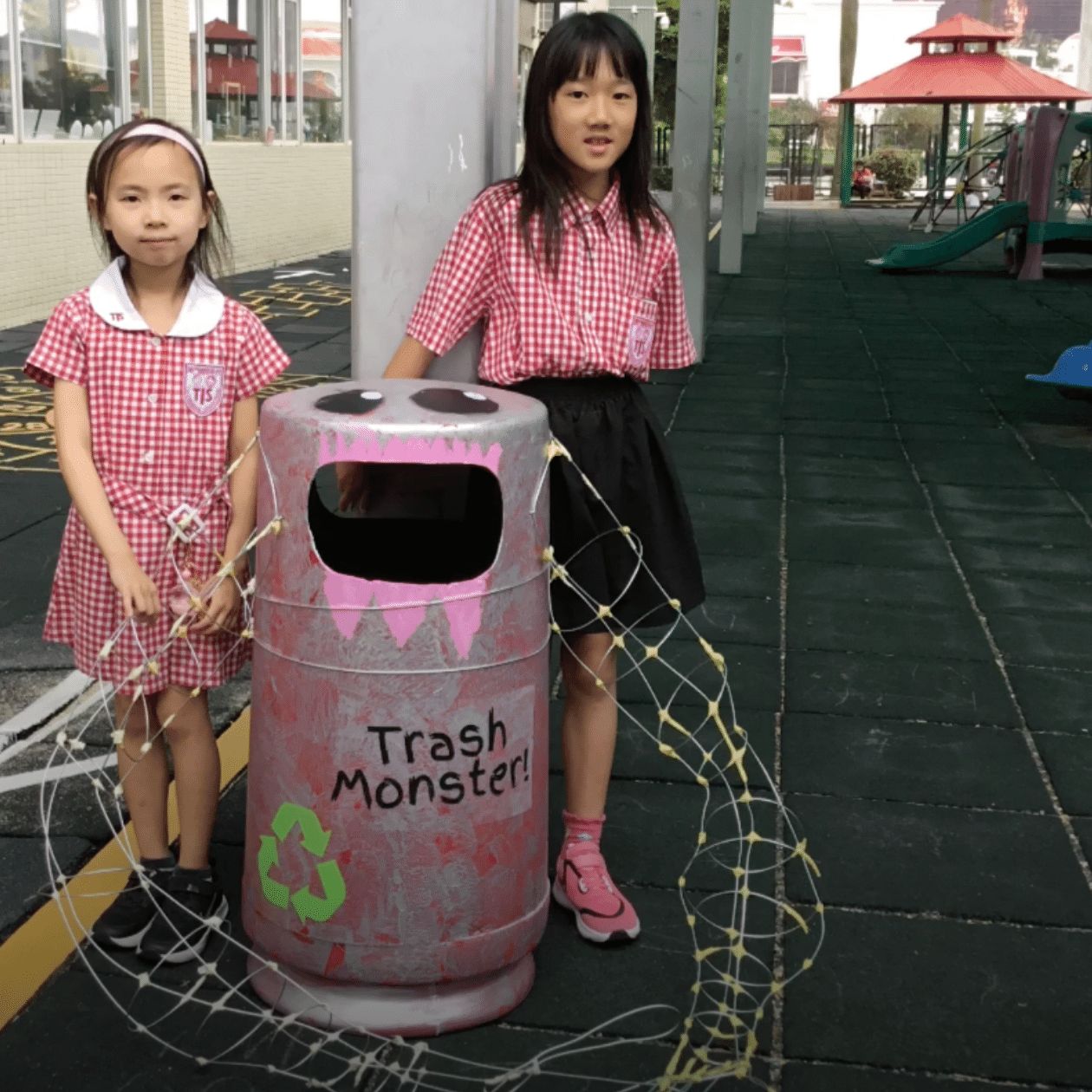 Team 2 noticed that there was too much trash lying around, so they thought students would be more inclined to put their rubbish in the bins if they changed the bins into trash monsters. See if you can spot the two monsters on the playground and teachers, tell your students that they’re starving!!