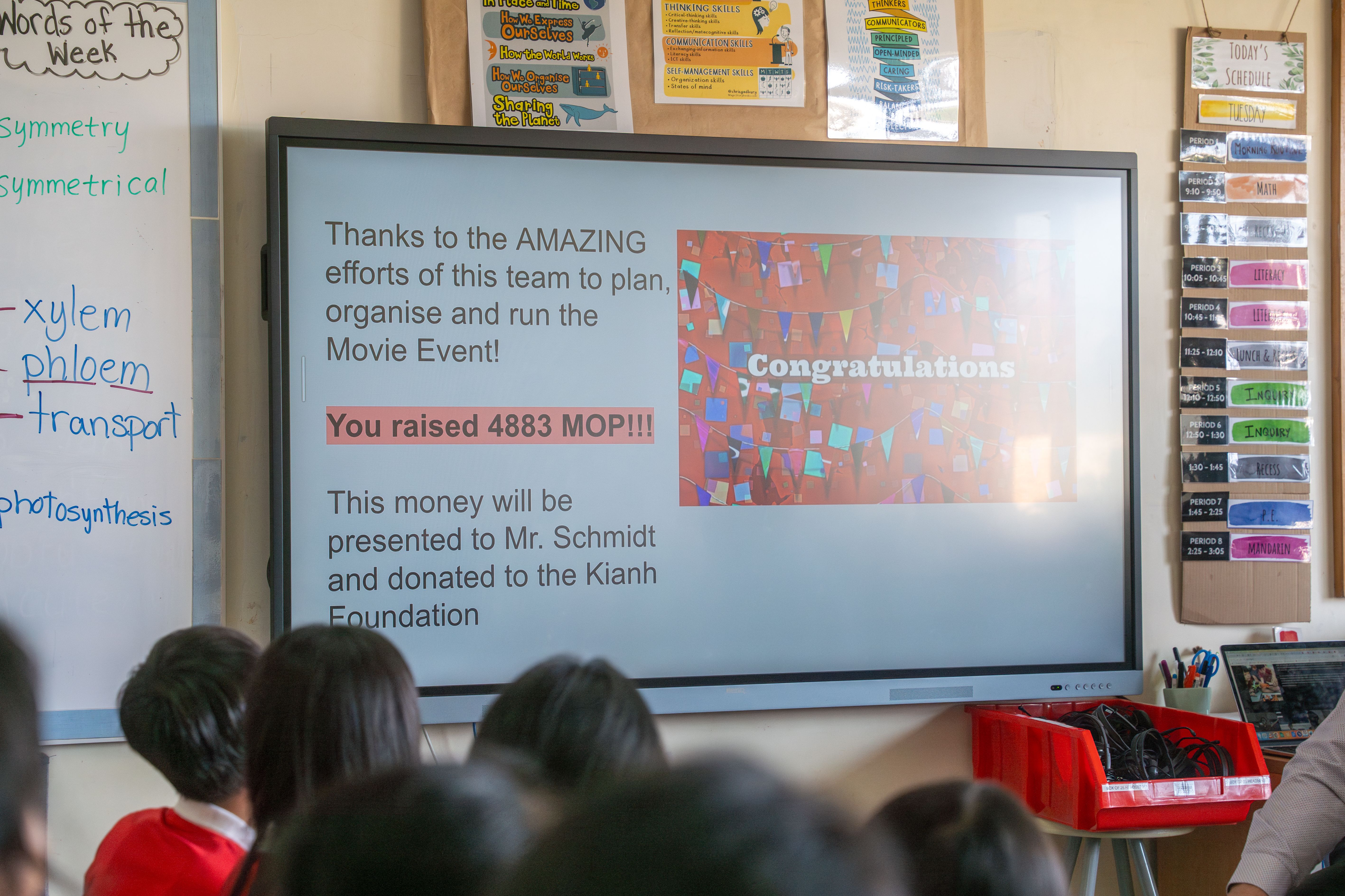 The Elementary Leadership Team hosted a memorable movie night recently that brought our community together and raised an impressive 4,883 MOP for the Kianh Foundation. It was an evening filled with laughter, excitement, and a shared sense of purpose.