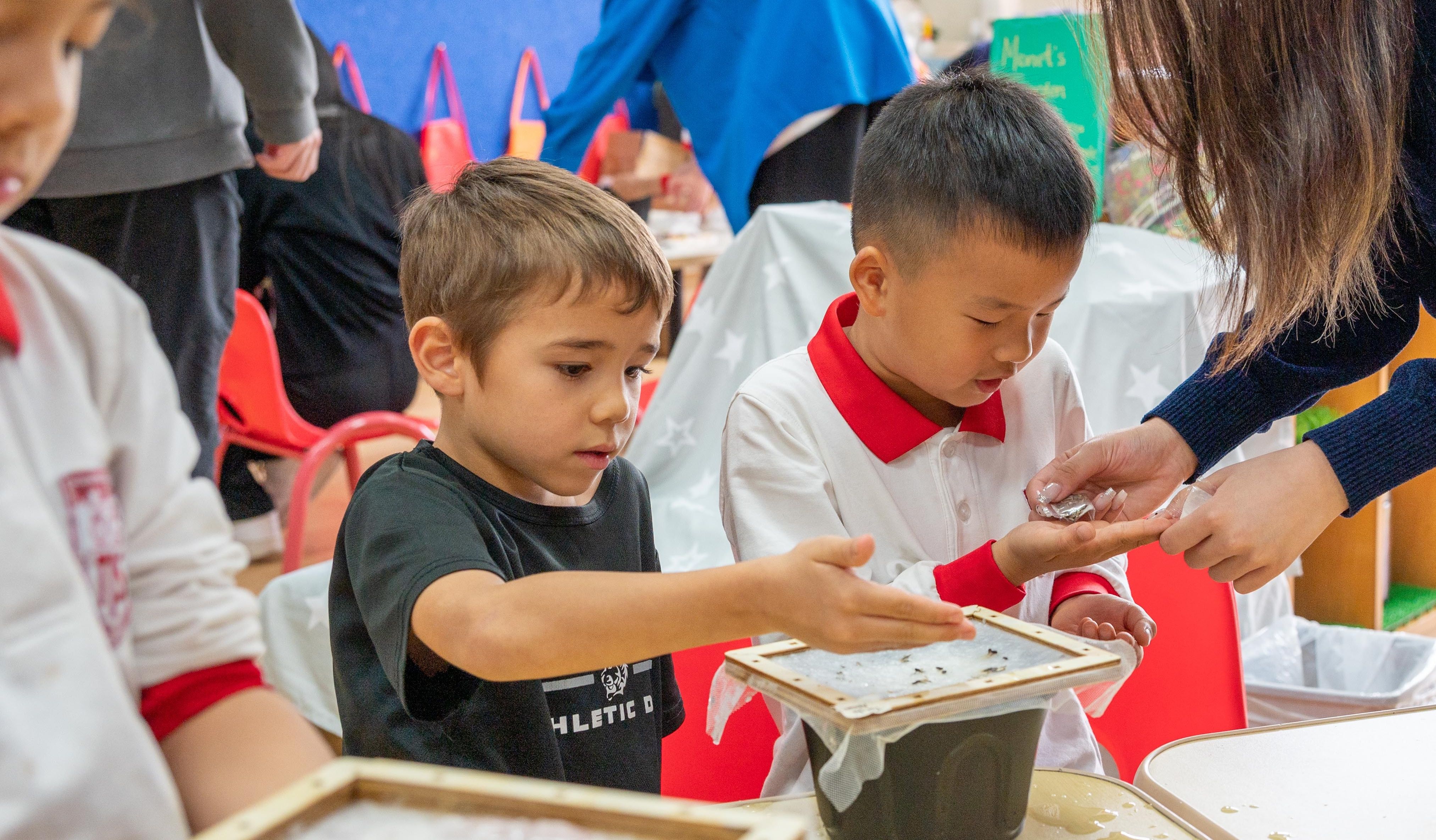 Learning spaces are set up and tailored throughout the year to support a hands-on inquiry approach. Lighting, music, aromatherapy, colours, textures and natural materials play an important role in engaging the senses and “setting the stage” for a full sensory experience.