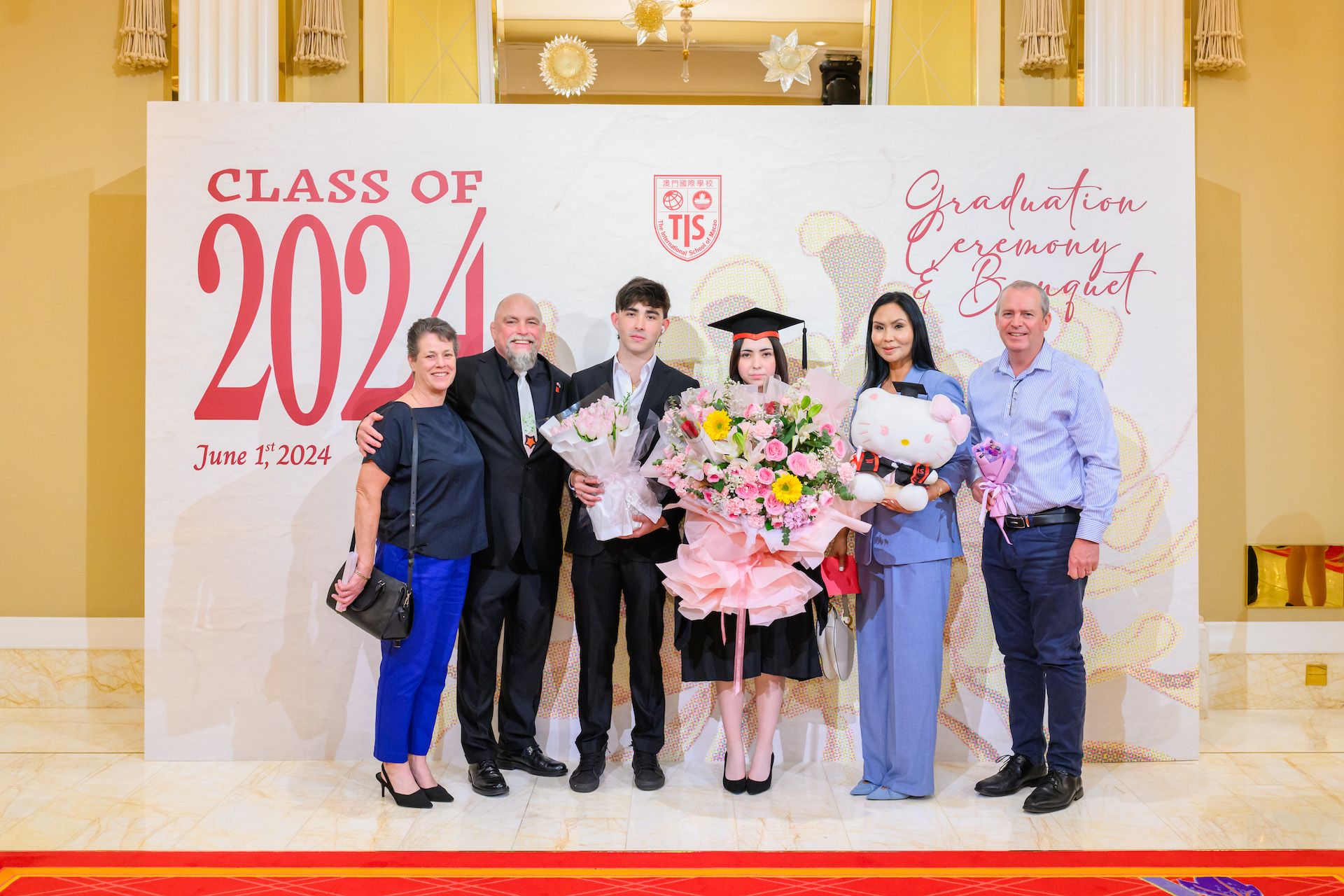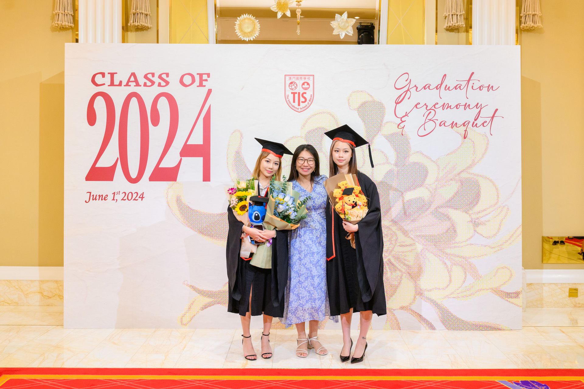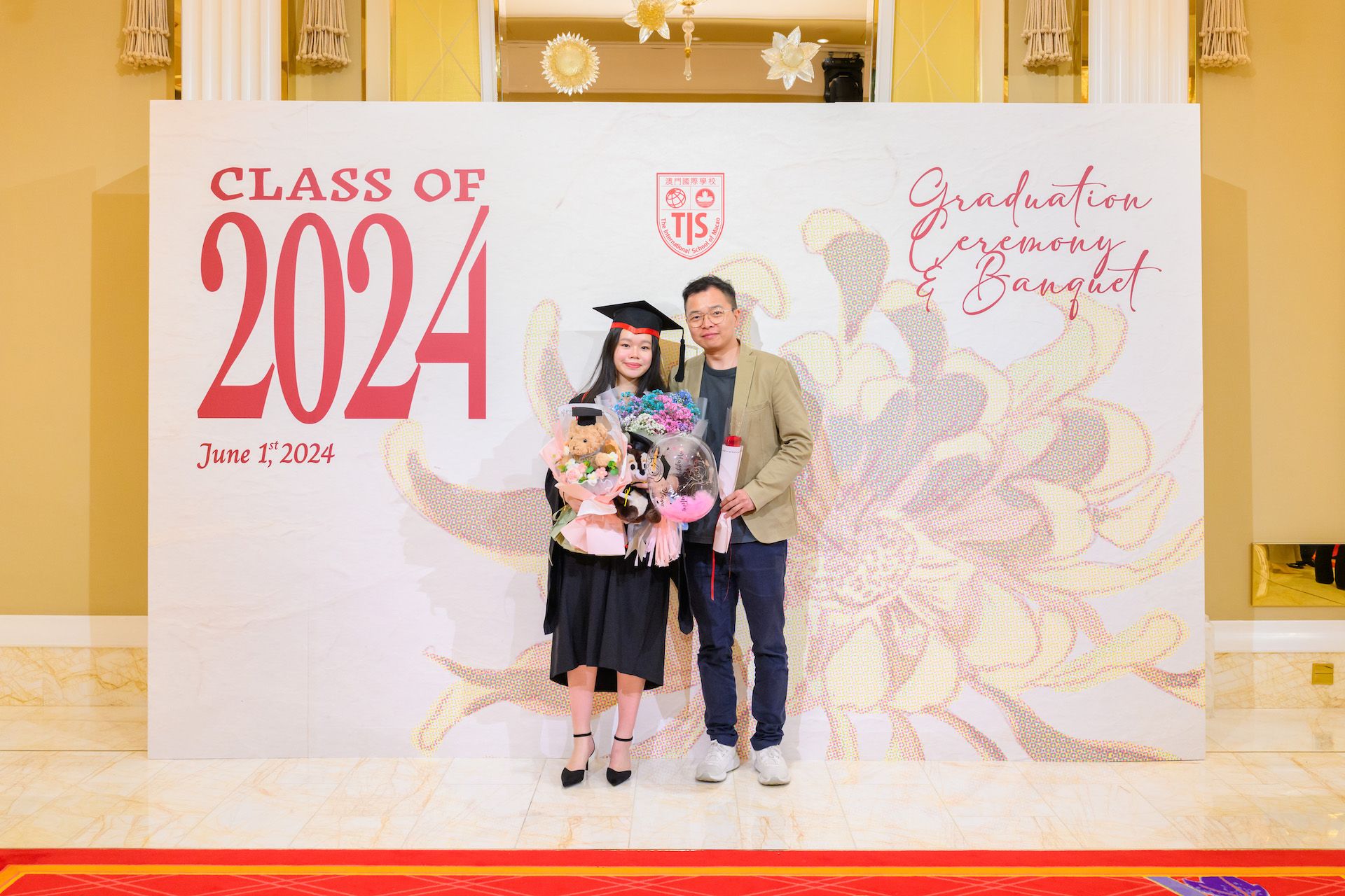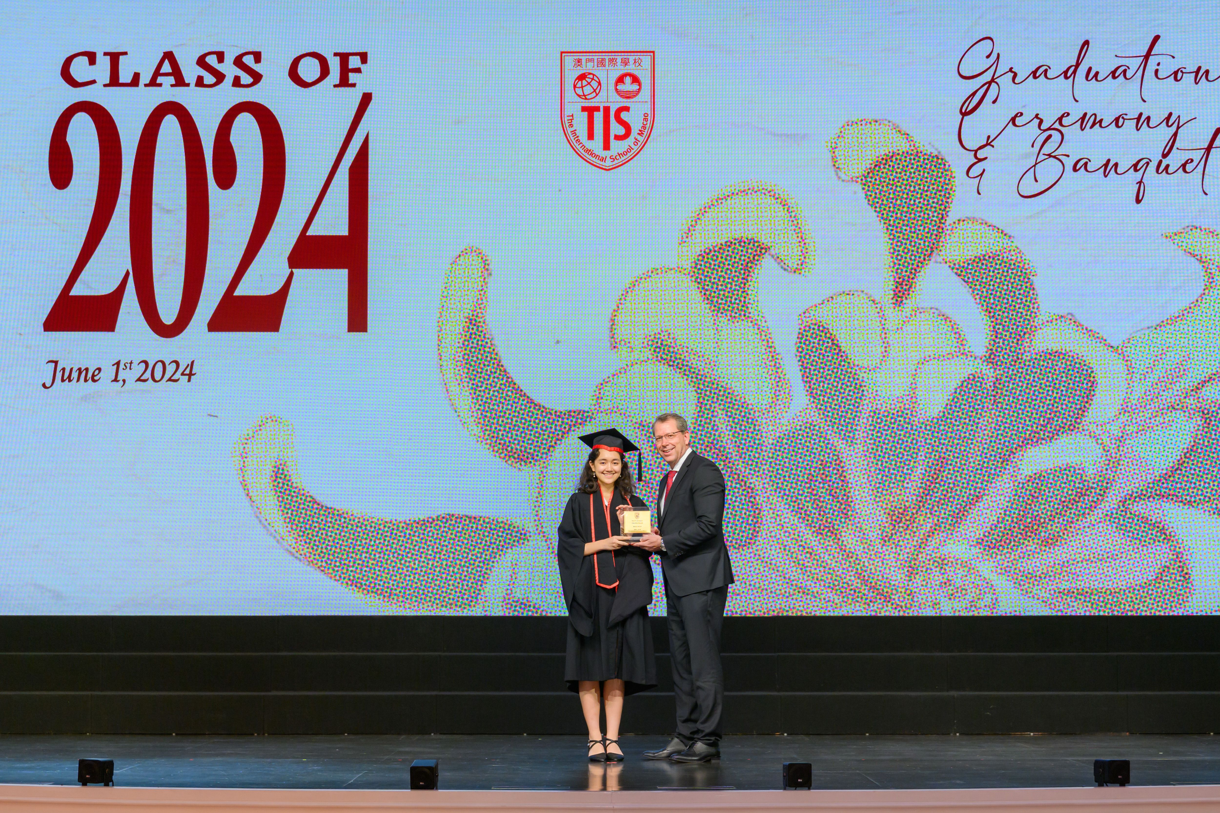 The 2024 Graduation Ceremony of The International School of Macao (TIS) was held at Wynn Palace Hotel on Saturday, June 1st, 2024. Attended by family, friends, teachers, guests, and TIS leadership, the event celebrated the graduation of 63 students. Guests included the Head of Department of Students from Education and Youth Development Bureau of Macao SAR (DSEDJ) Mr. Chan Iok Wai, the Acting Consul General of Canada in Hong Kong and Macao Mr. Jason Reeve, TIS Board of Governors Dr. KL Tong, TIS School Supervisor Dr. Howard Stribbell.