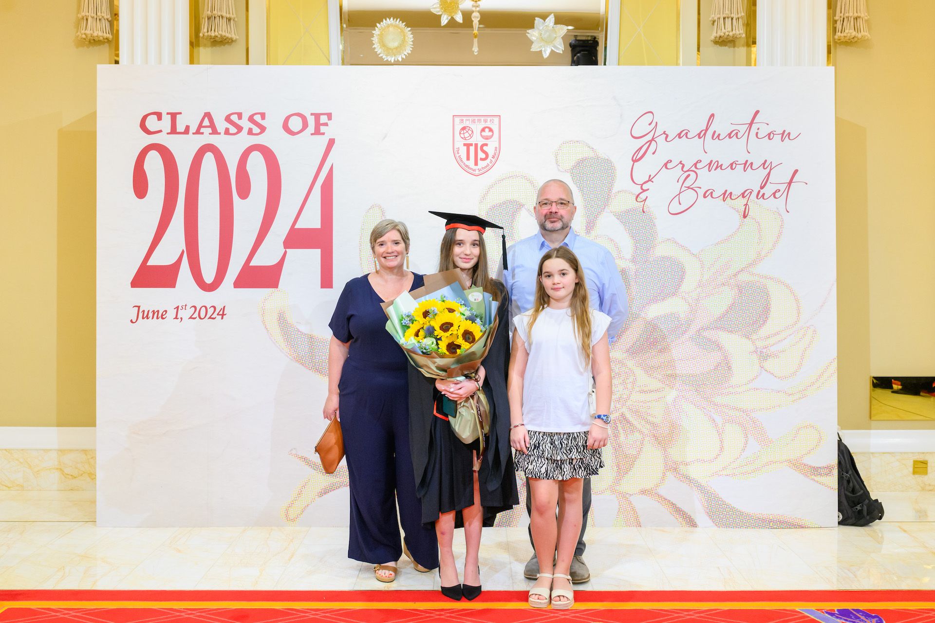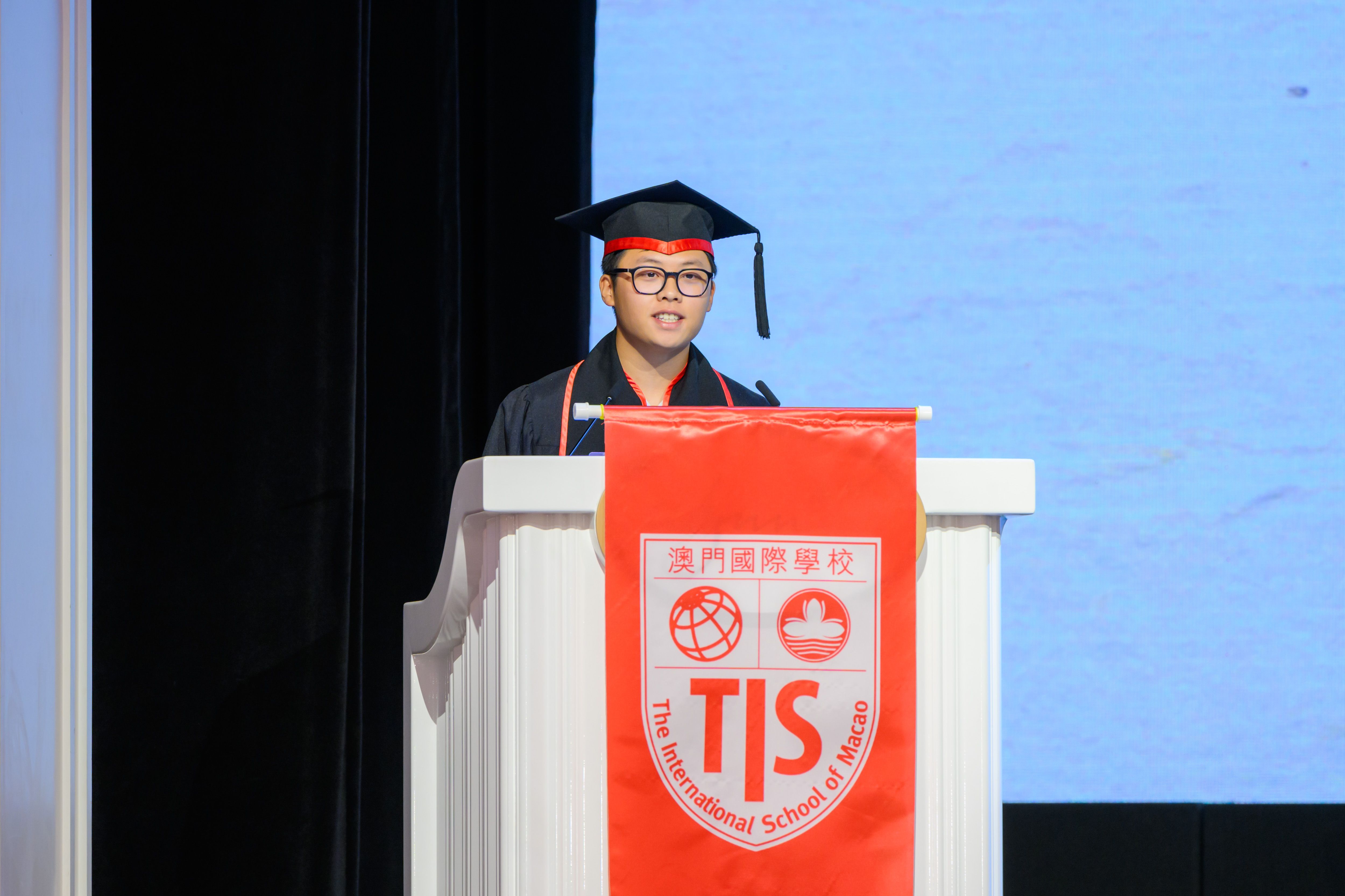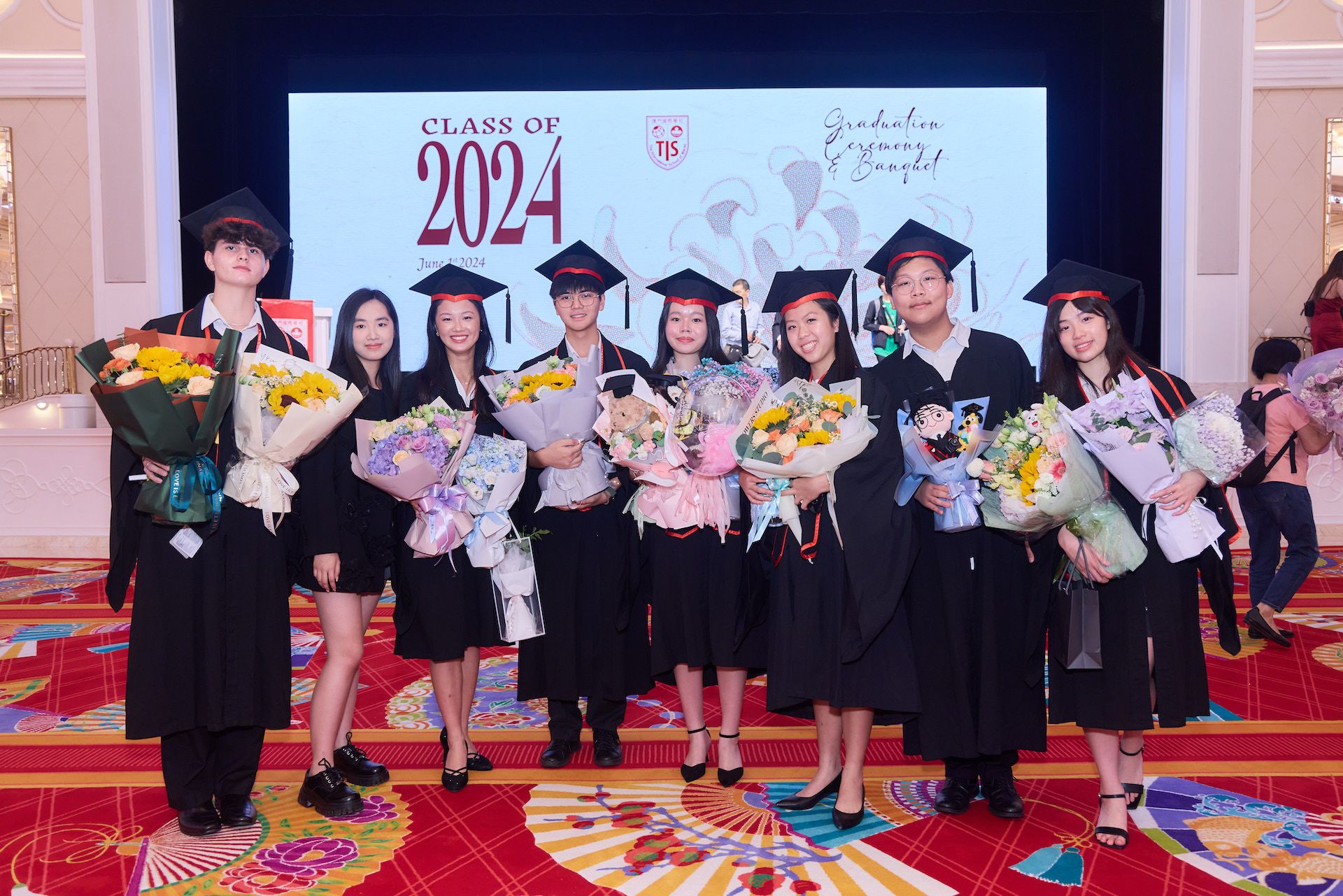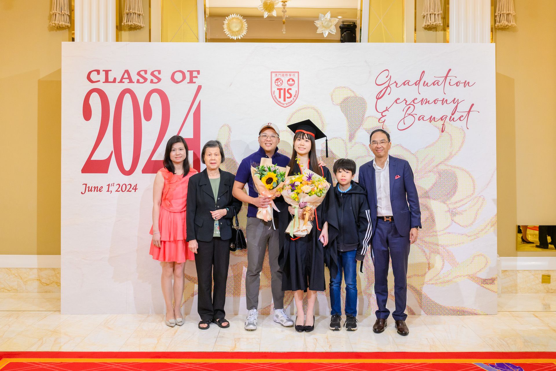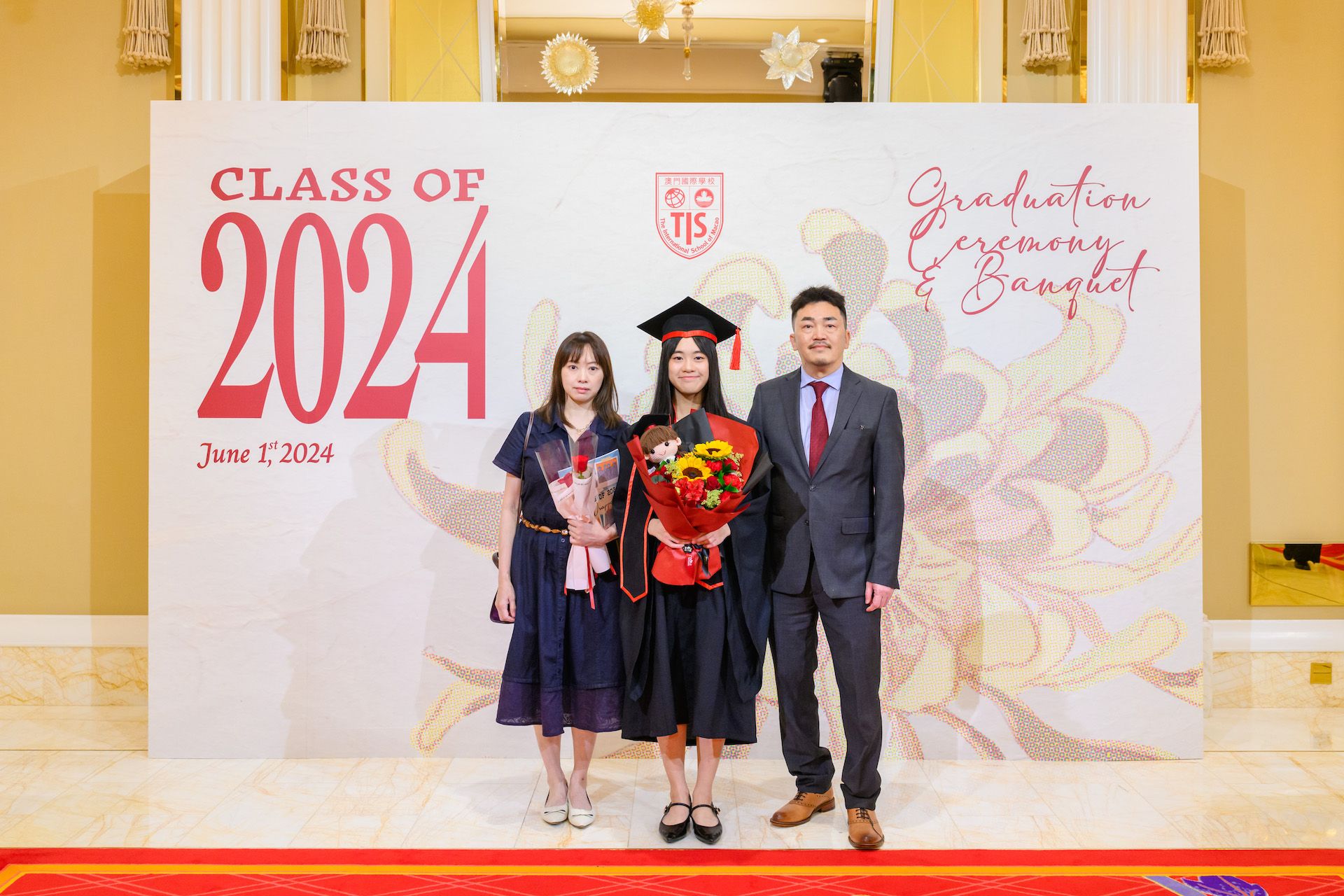 The 2024 Graduation Ceremony of The International School of Macao (TIS) was held at Wynn Palace Hotel on Saturday, June 1st, 2024. Attended by family, friends, teachers, guests, and TIS leadership, the event celebrated the graduation of 63 students. Guests included the Head of Department of Students from Education and Youth Development Bureau of Macao SAR (DSEDJ) Mr. Chan Iok Wai, the Acting Consul General of Canada in Hong Kong and Macao Mr. Jason Reeve, TIS Board of Governors Dr. KL Tong, TIS School Supervisor Dr. Howard Stribbell.