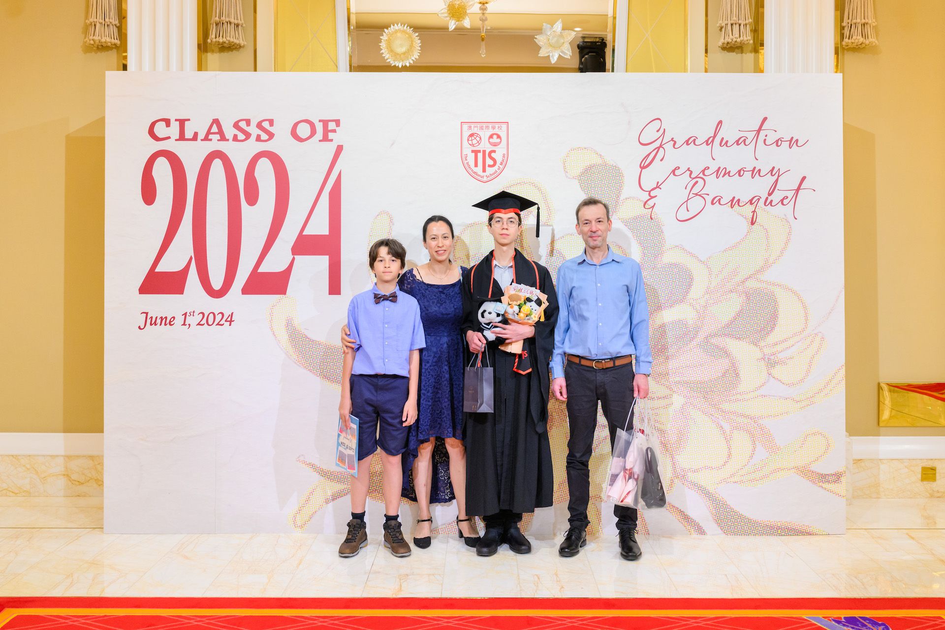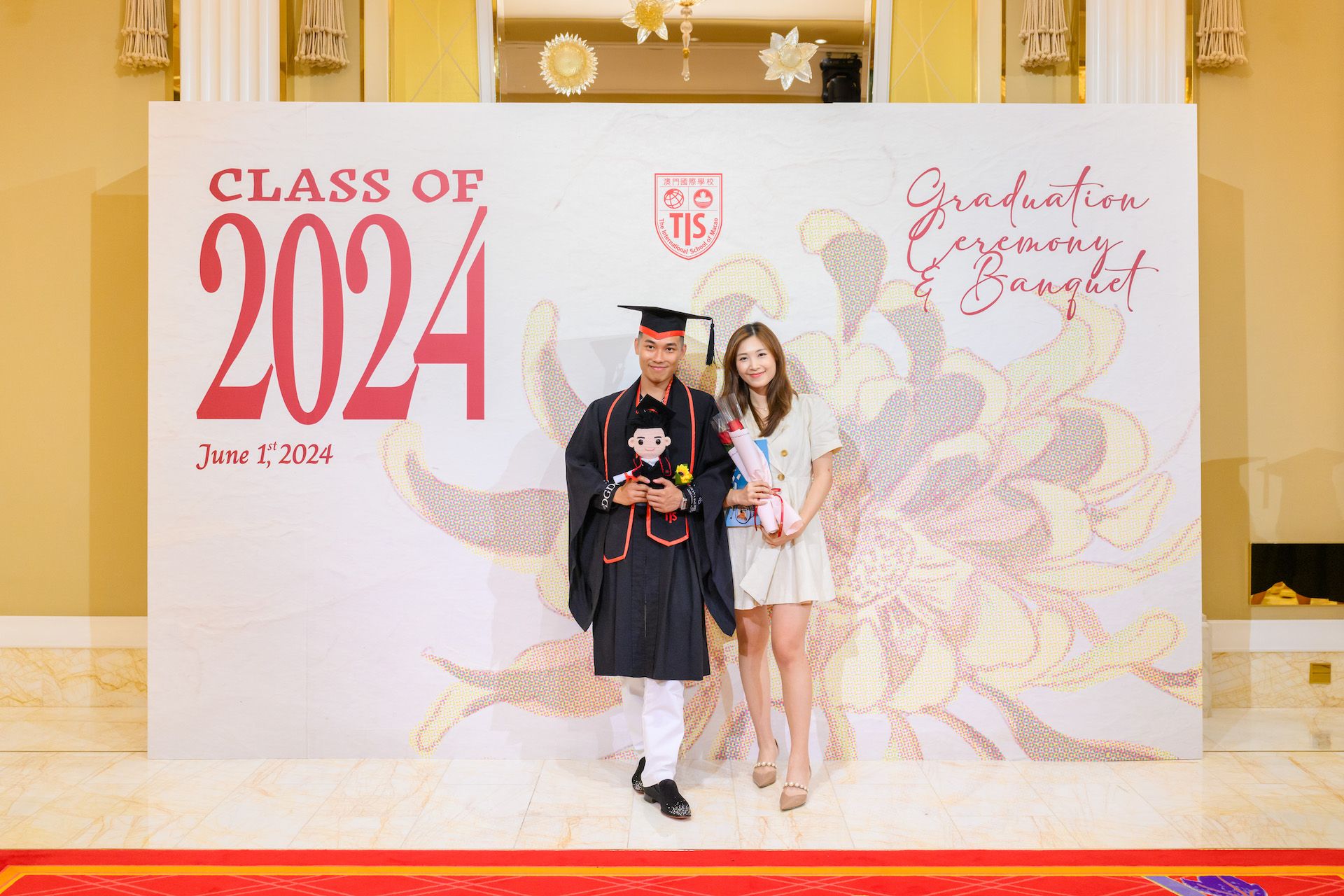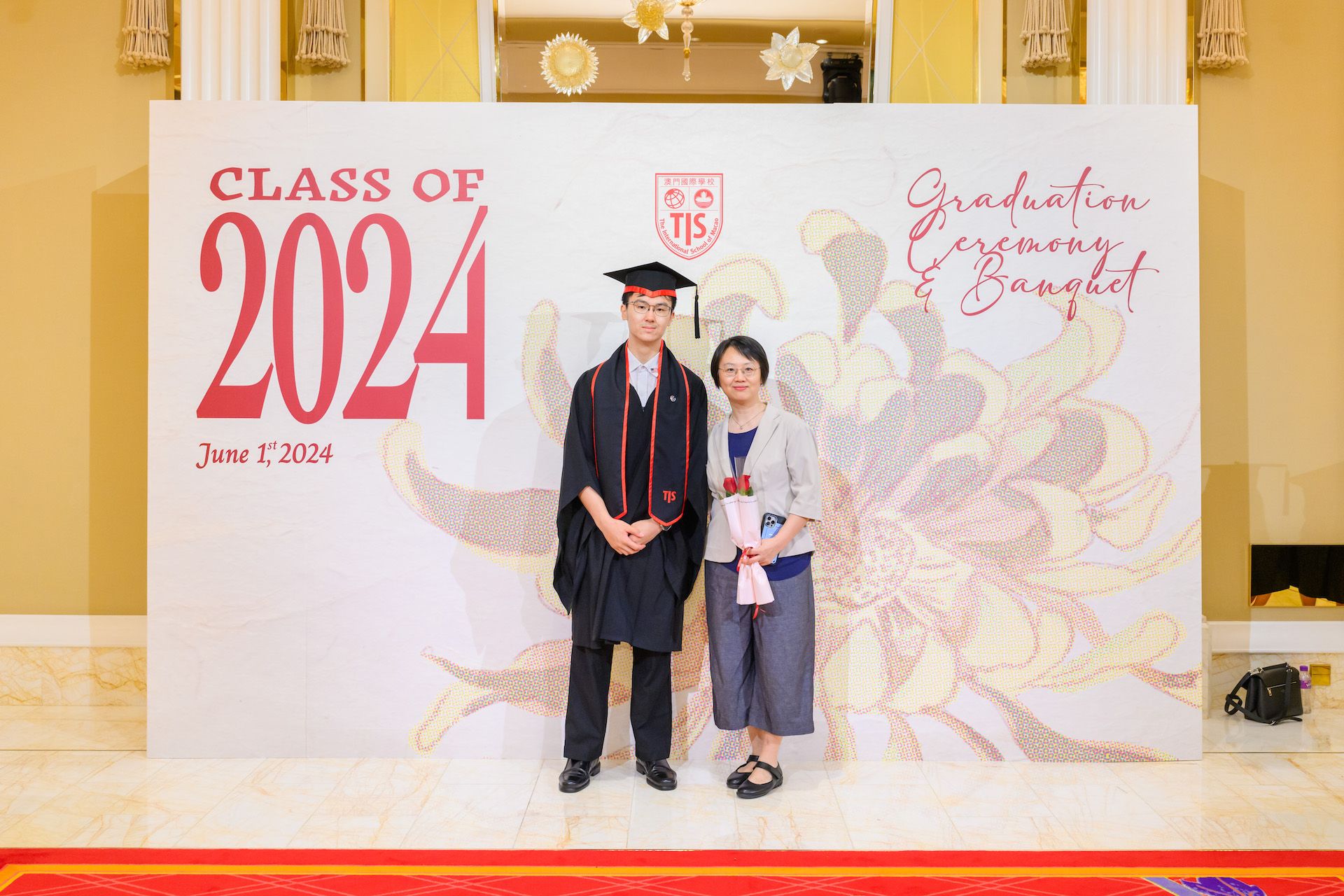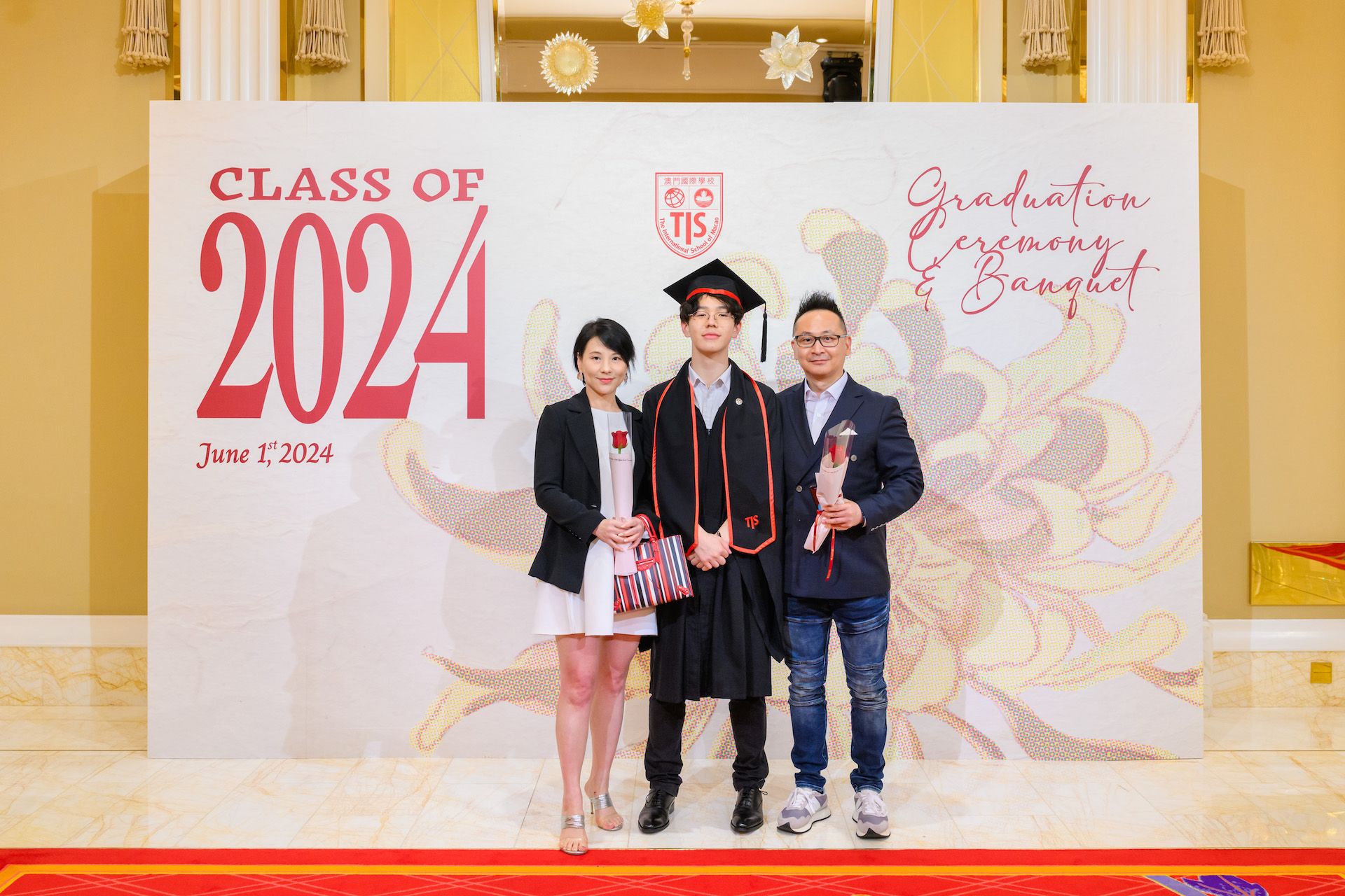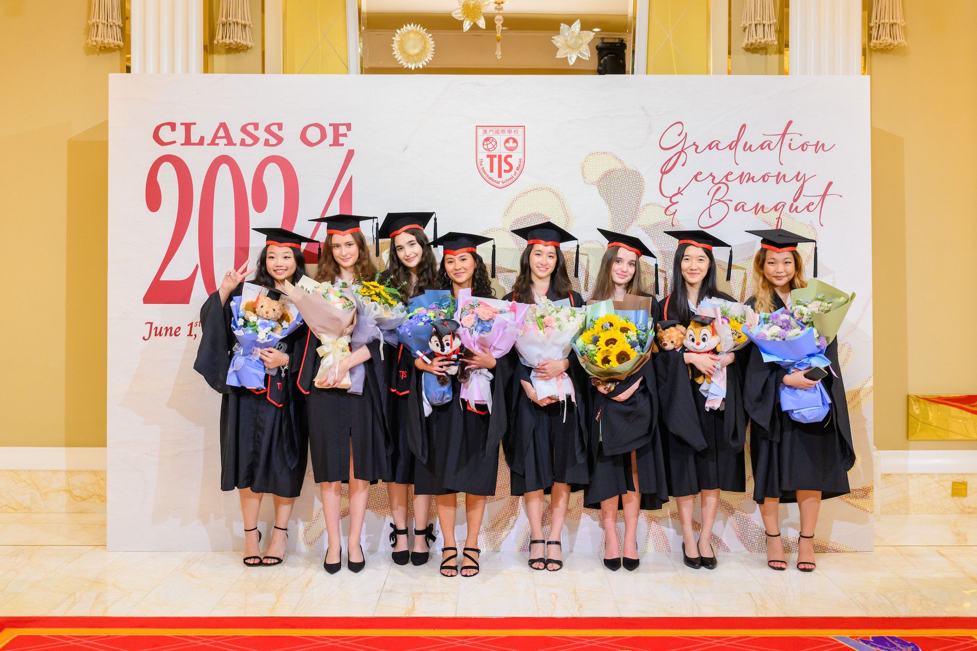 The 2024 Graduation Ceremony of The International School of Macao (TIS) was held at Wynn Palace Hotel on Saturday, June 1st, 2024. Attended by family, friends, teachers, guests, and TIS leadership, the event celebrated the graduation of 63 students. Guests included the Head of Department of Students from Education and Youth Development Bureau of Macao SAR (DSEDJ) Mr. Chan Iok Wai, the Acting Consul General of Canada in Hong Kong and Macao Mr. Jason Reeve, TIS Board of Governors Dr. KL Tong, TIS School Supervisor Dr. Howard Stribbell.
