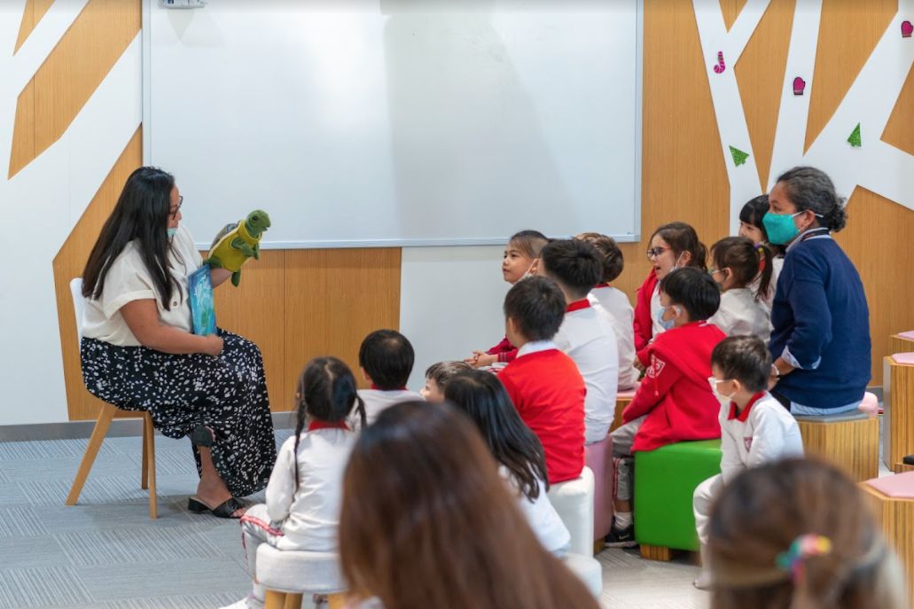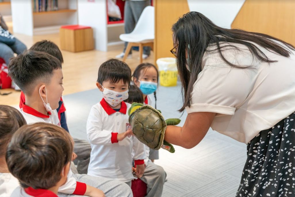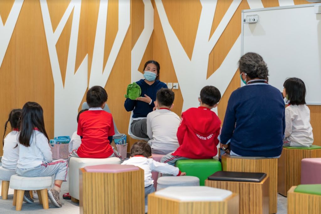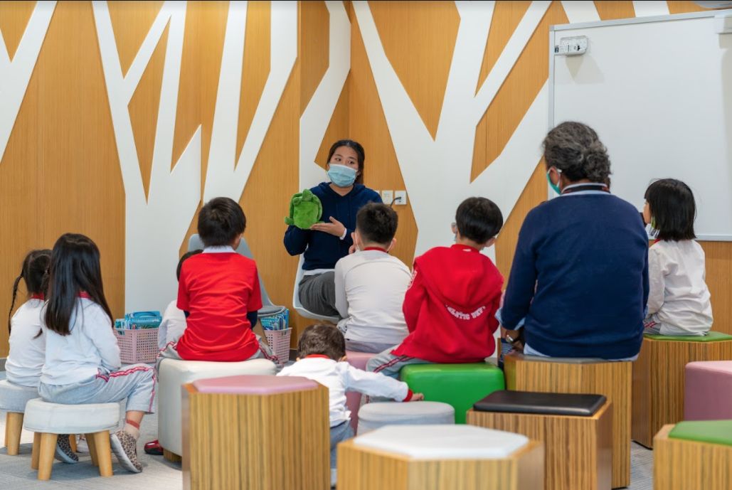 Ms. Mak and Ms. Huang sat down in front of their audience, a group of students from kindergarten, grades 1 and 2, along with their parents who were waiting, with bulging eyes looking at the two teachers, unsure of what was going to come out of this session, but equally excited by the anticipation of their journey ahead: a fantastic deep dive into the Ocean, but right there, in their seats, without leaving the Primary Library.