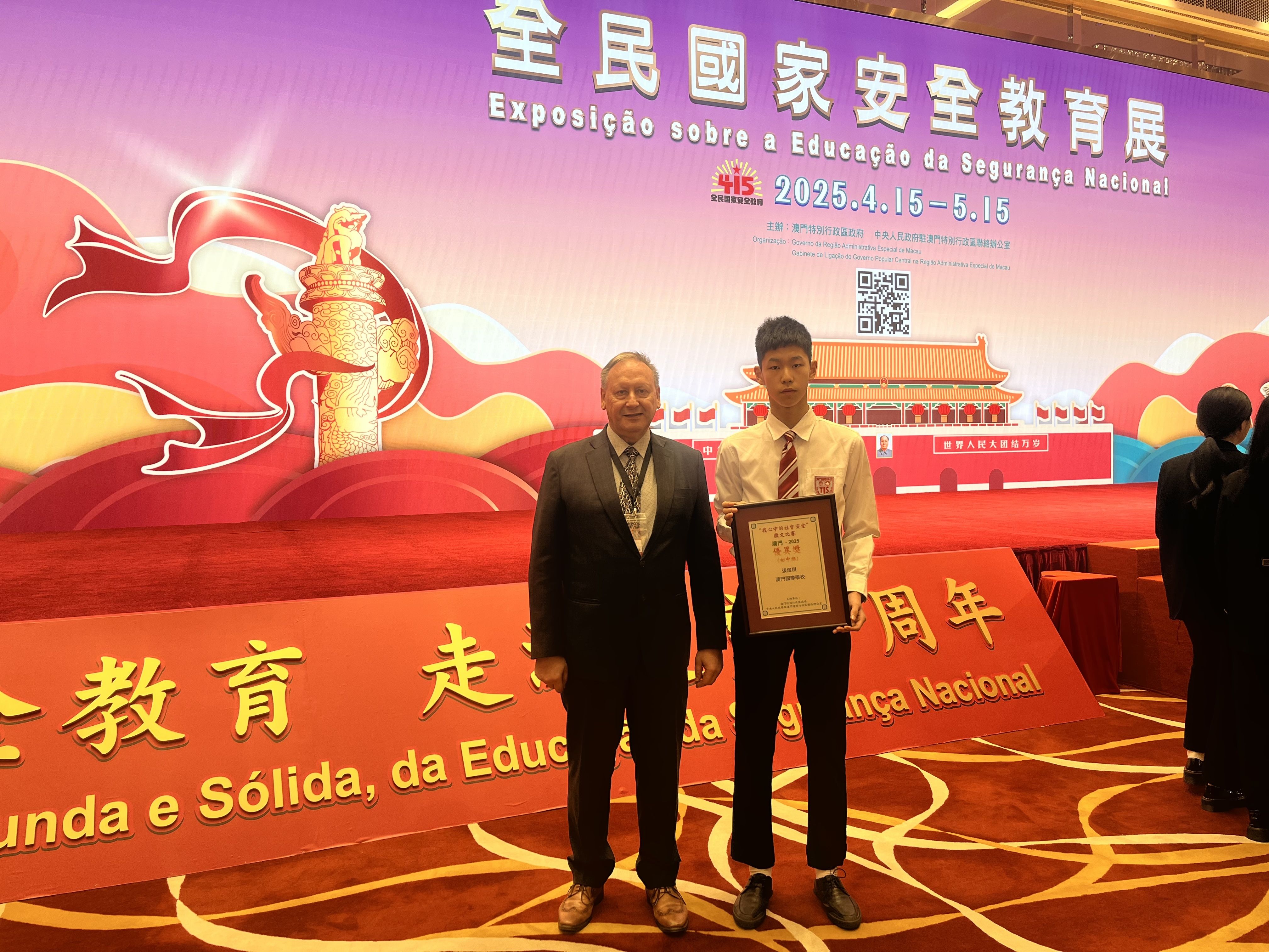 We are thrilled to celebrate our Grade 8 student, Lucas Zhang, who has achieved the Excellence Prize in the "My Notion of Social Security" essay and short video competition! This prestigious event, organised by the Macao SAR government and the Liaison Office of the Central People's Government in Macao SAR, garnered enthusiastic participation from over 25,700 students across 8 higher education institutions and 48 secondary schools.