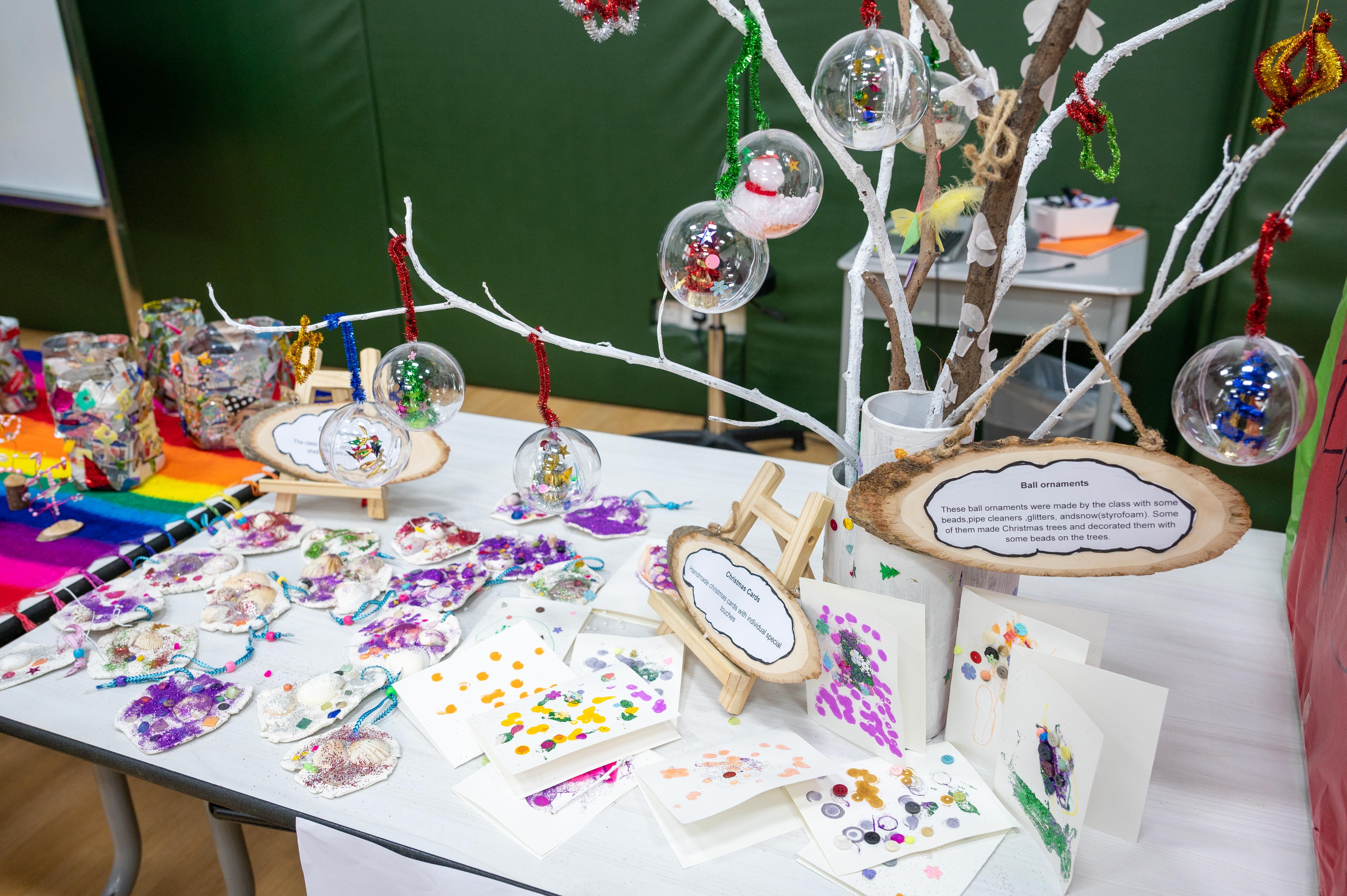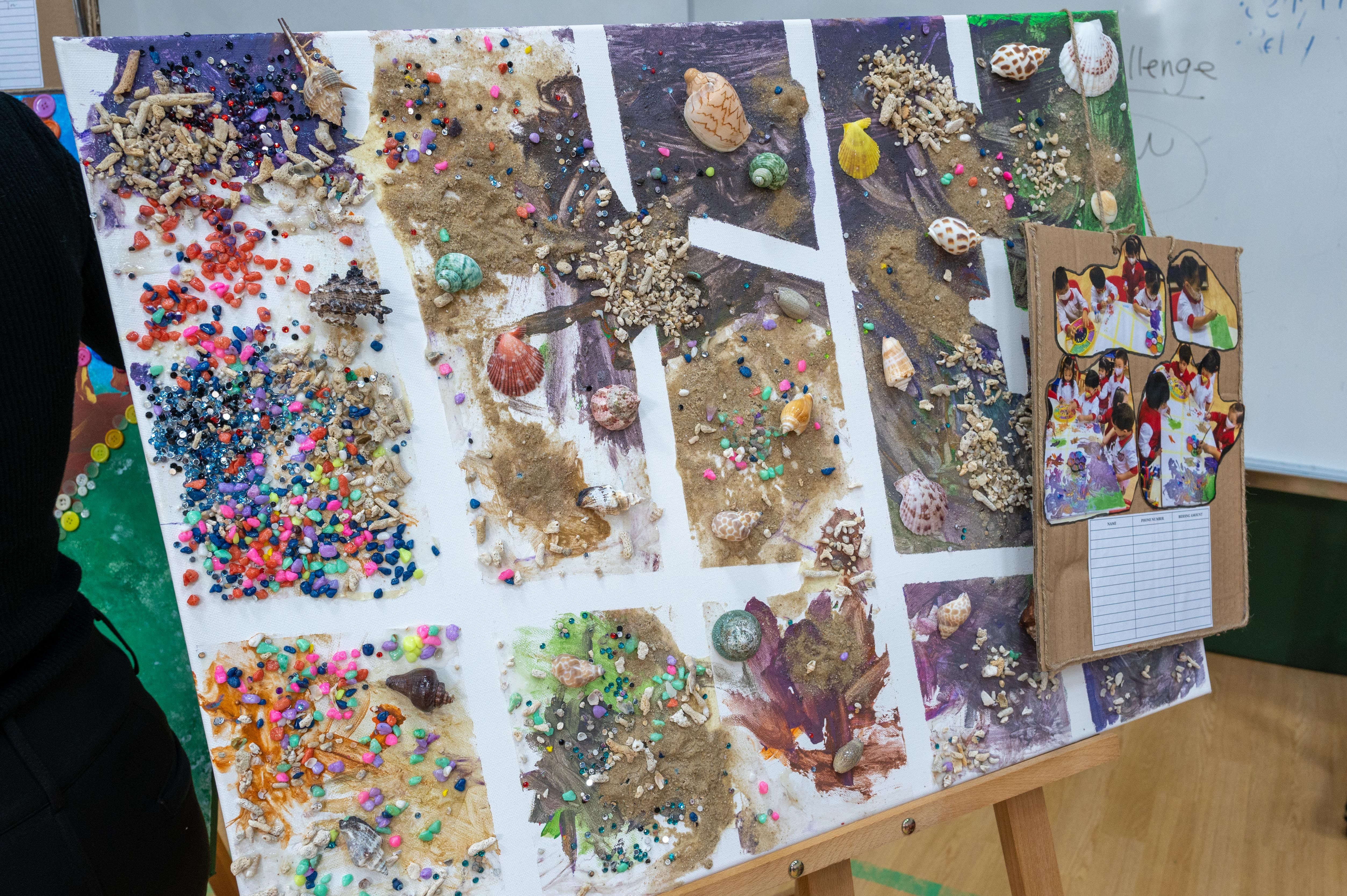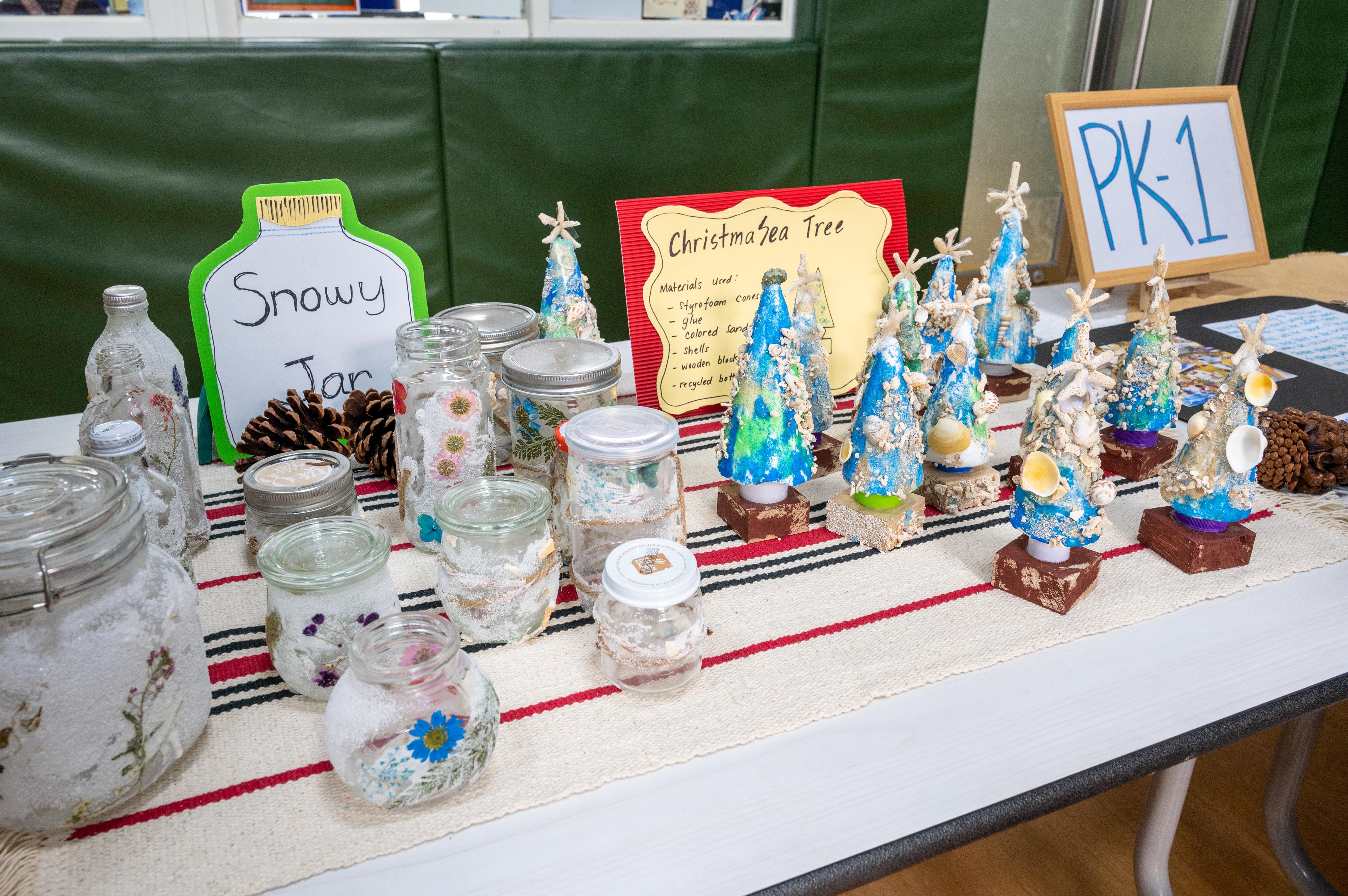 This year, with the United Nations’ Sustainable Development Goals in mind of #1 No Poverty, #2 Zero Hunger, #11 Sustainable Cities and #14 Communities and Life Below Water, the Kindergarteners collected donations for Caritas and Cradle of Hope. By donating an item, you could take home a wonderful project made with recycled materials by students from Pre-K (K-1), JK (K-2) and SK (K-3). For example, inspired by their field trip to Hác Sá beach, PK-1 students found beautiful shells that they turned into unique keychains. They added beads to them, exercising their motor skills, math and language skills as they negotiated with each other to share different materials for their creations.