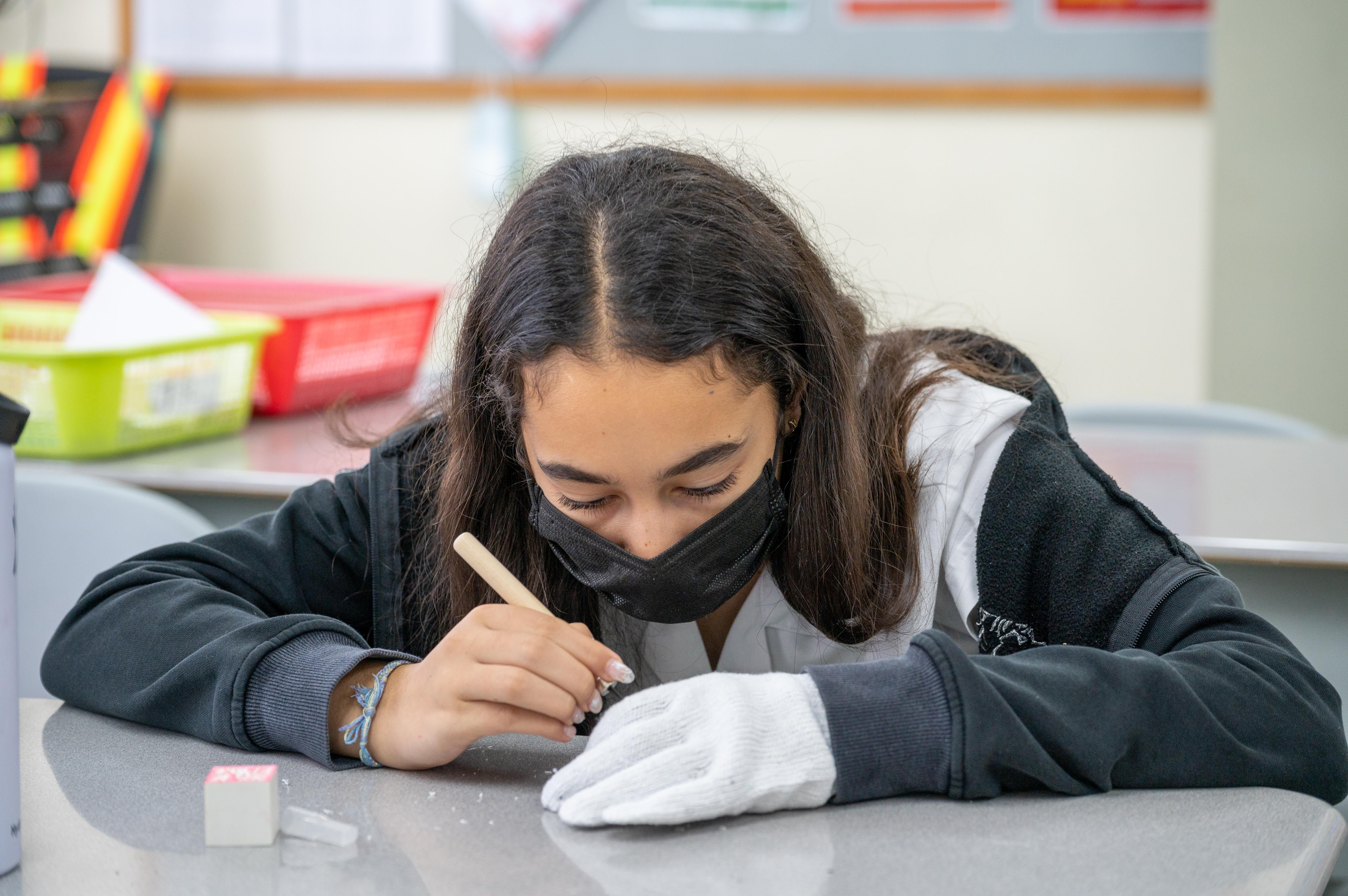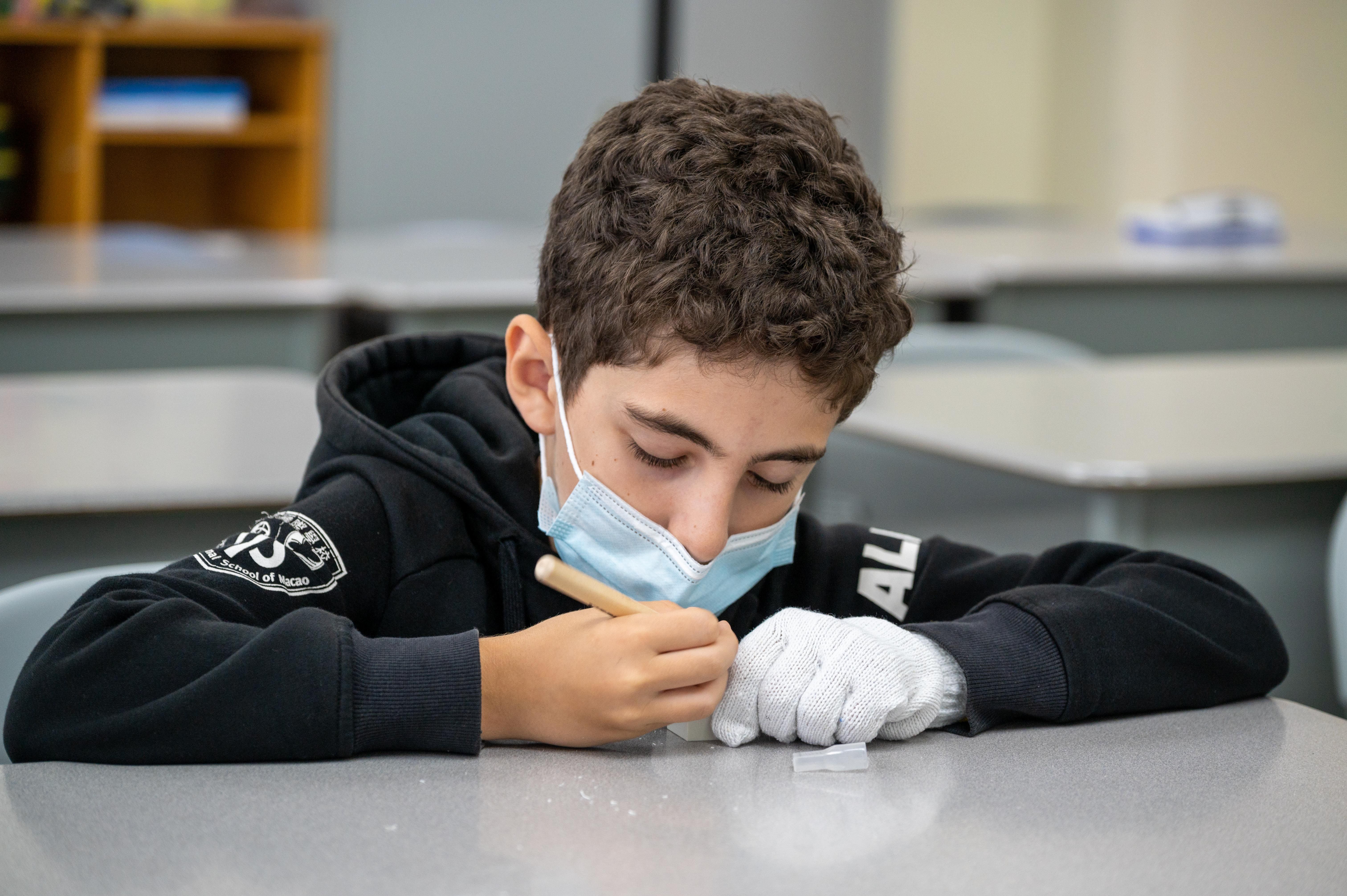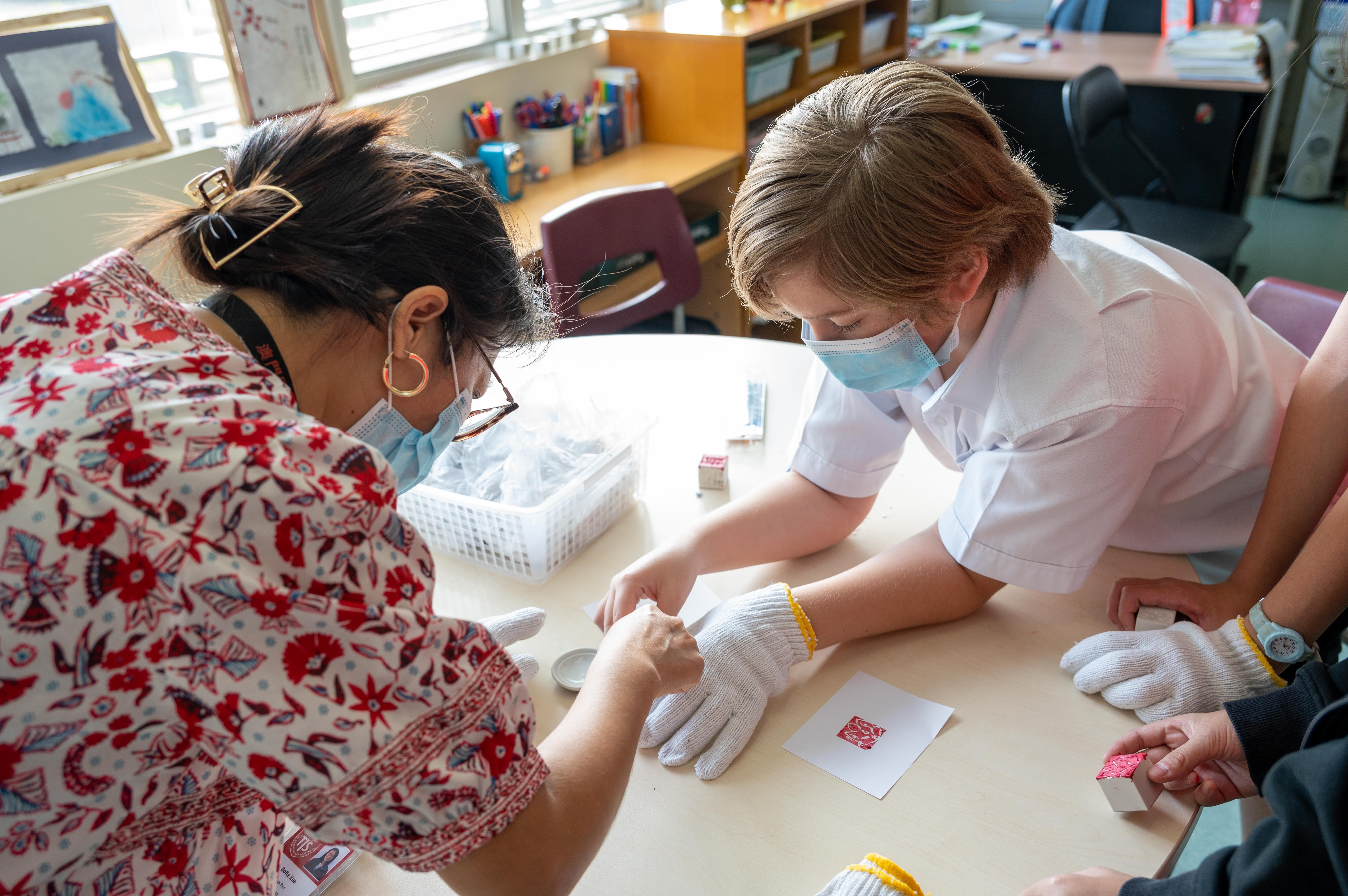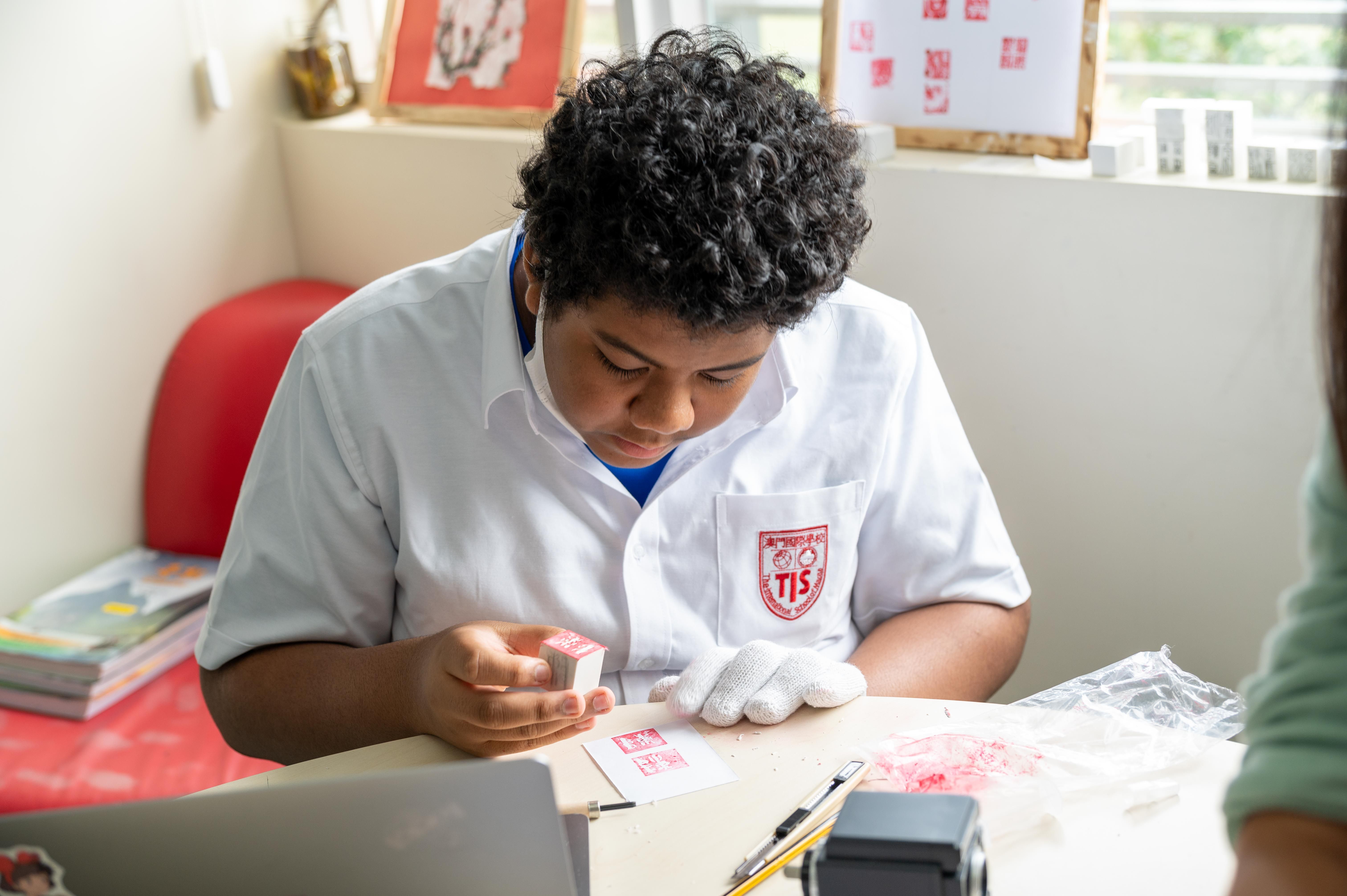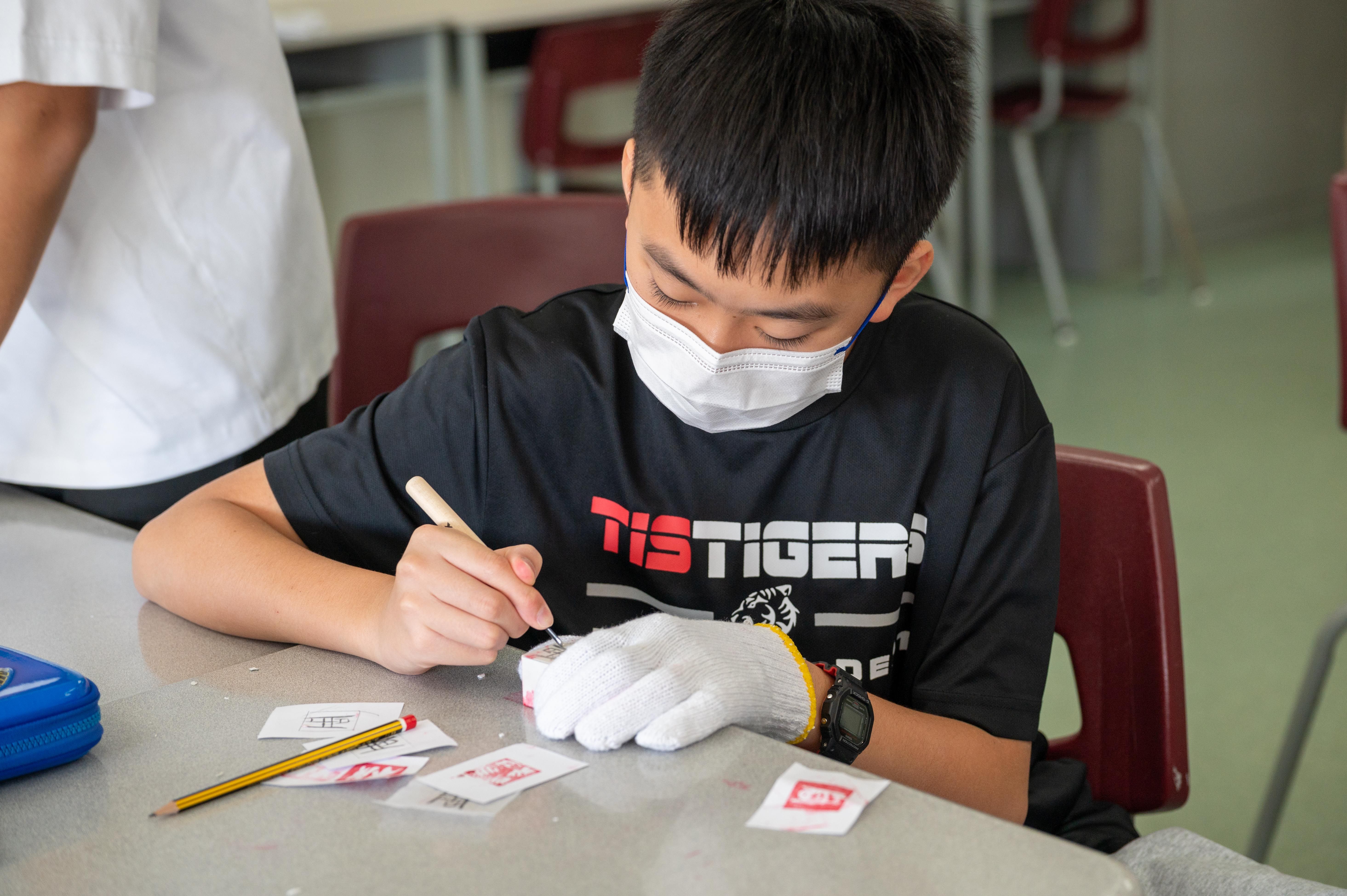 Middle School students learn the Art of Seal Carving during Chinese Culture Enrichment Week.