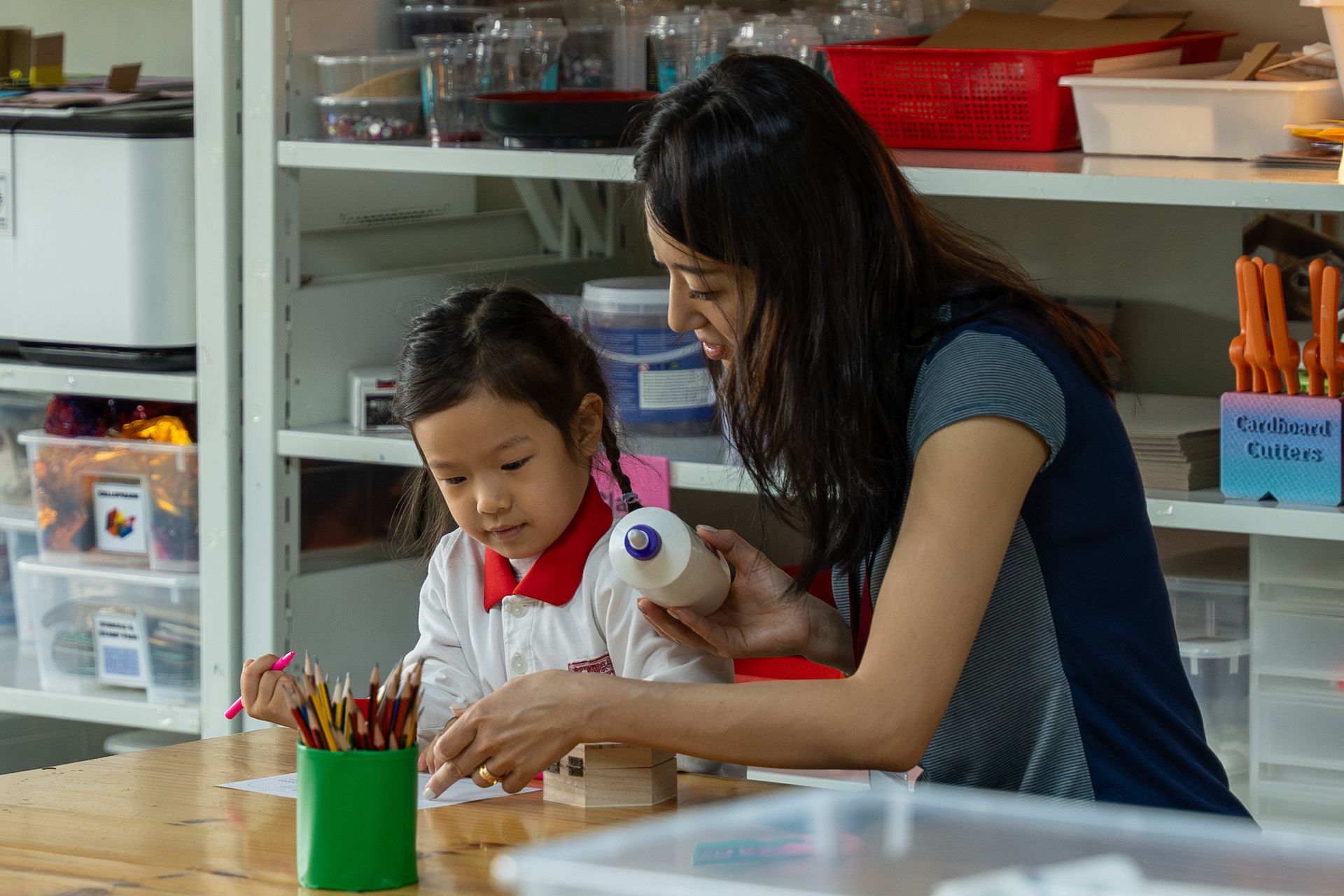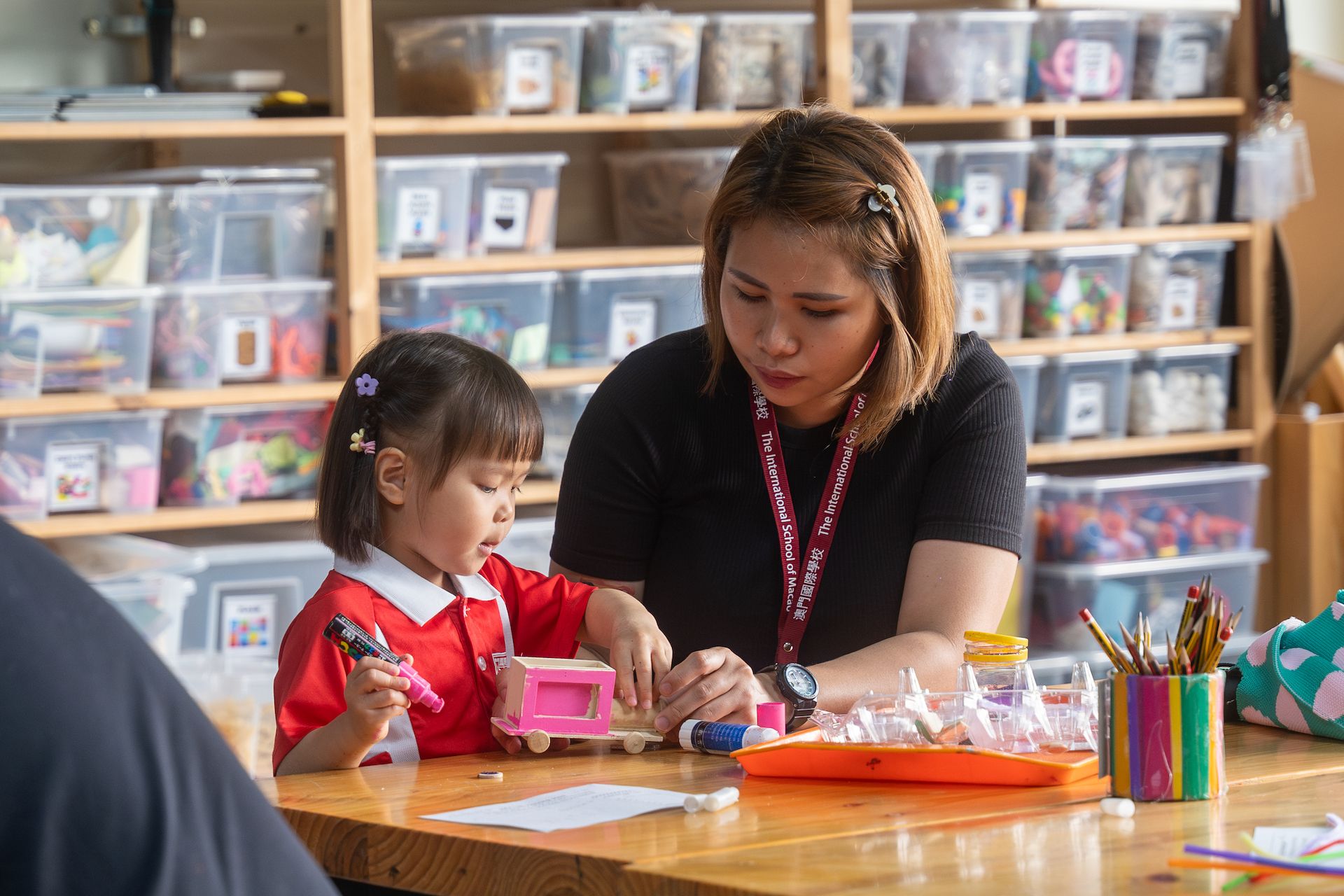 Our Pre-K students wrapped up their unit titled "Who We Are," with a visit to the IDEA Lab and the help of a very special guest: their parents! At the Lab, they each chose a wooden object, planned their unique design, and selected which loose parts and materials to decorate their object with. This activity showcased the power of choice, and how, with guidance from their teachers and parents, there are no limits to what they can achieve!