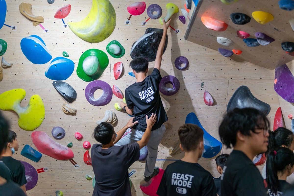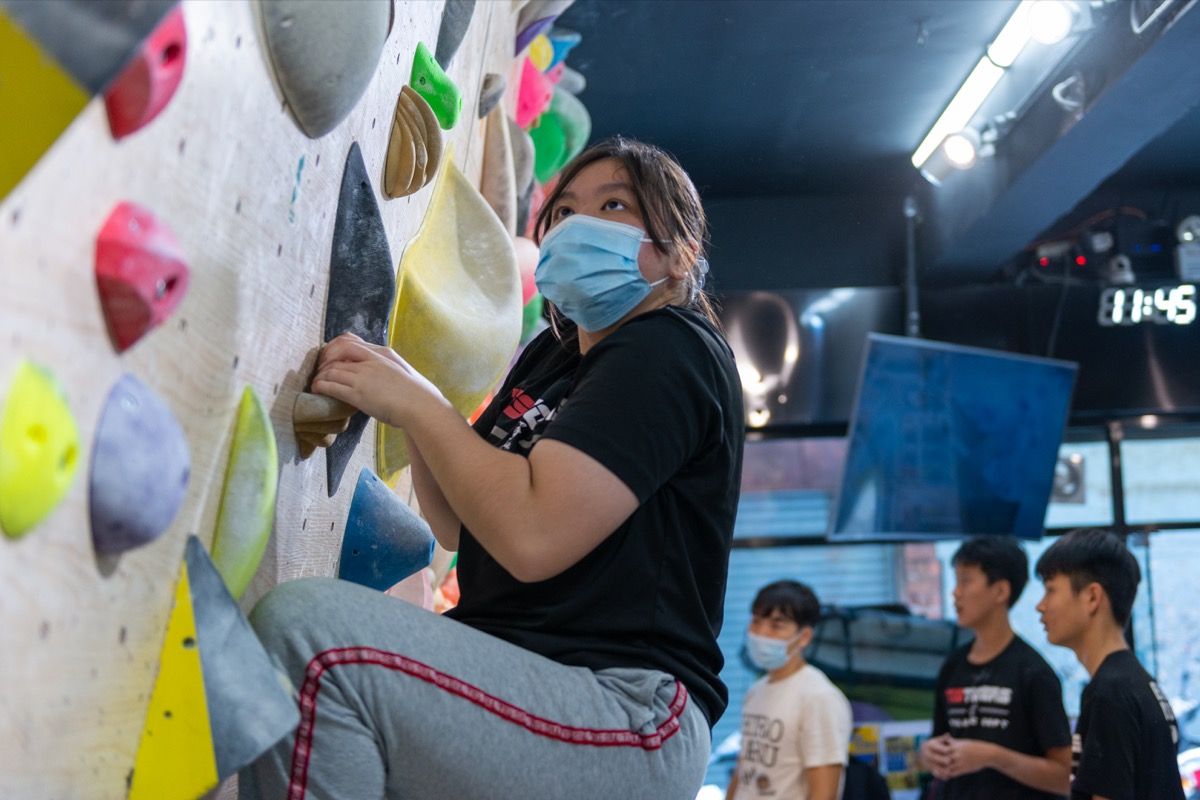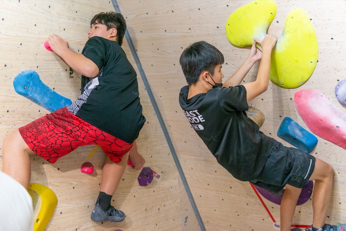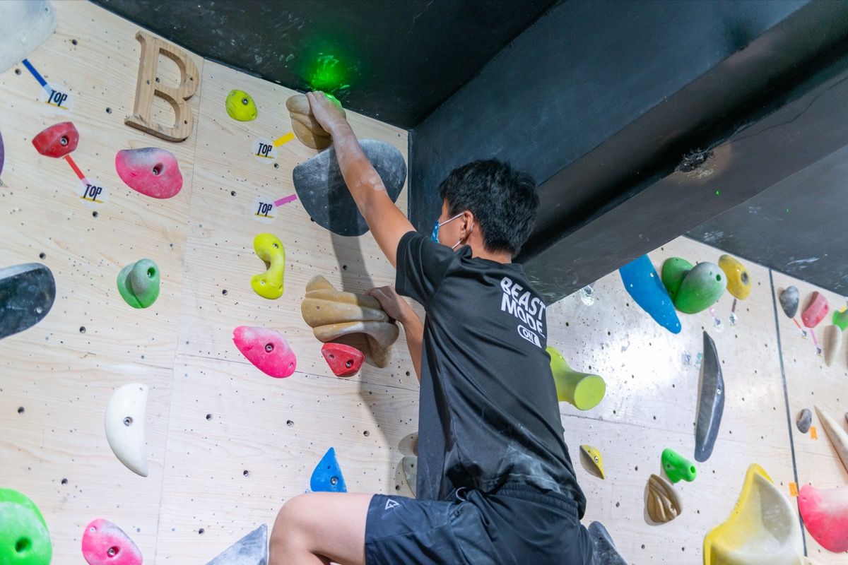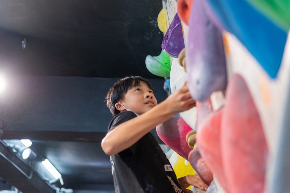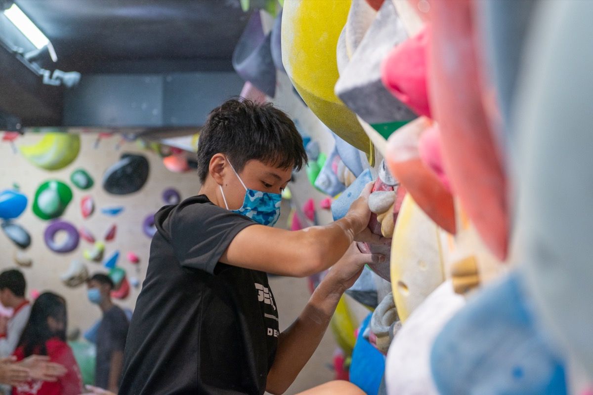 Taking on the colourful grips in front of her, Bernice takes the first steps and grabs on to the grips of the path of a V2 boulder. She quickly makes her way up and gets herself a meter off the ground in no time. She’s had some practice before: this is not the first time the grade 9 Outdoor Education students were there. But, there’s no perfect formula no matter how many times you’ve done this before and, halfway through, she realizes she needs to re-strategize. So, she stops, hanging in there, without releasing her grip while rethinking her path. She hears Mr Leguerrier’s voice from the back of her head, giving helpful instructions to lead her to a possible route. Finally, she’s “in the zone”, and a few moments later, with the strength of her legs, she pulls herself up, stretching her left hand to reach the top brown boulder and joining in her right hand. She hears Mr Leguerrier count “One...two...three!”, and that’s her cue to drop down after conquering the V2 path. Now, on to the next challenge.