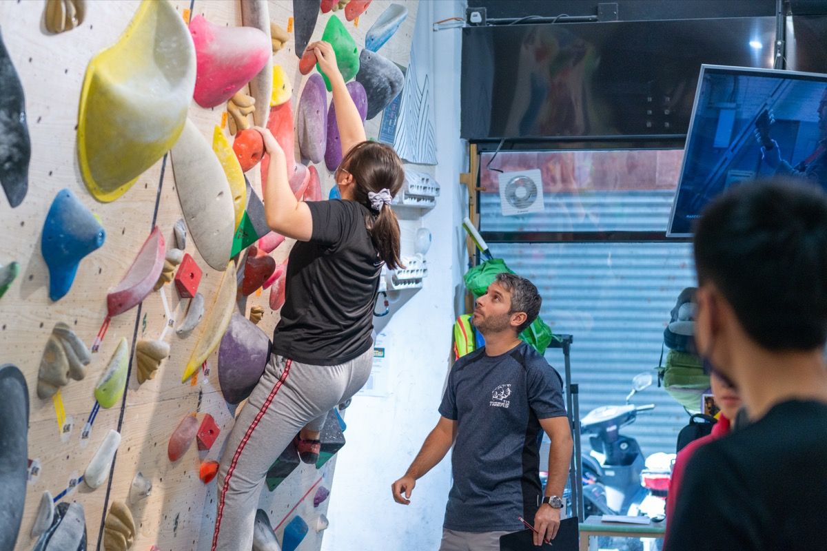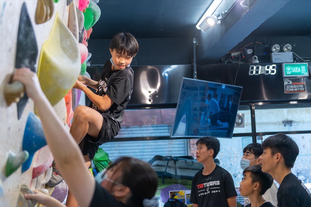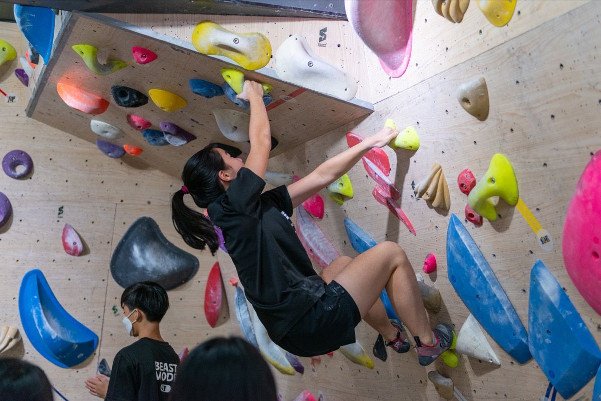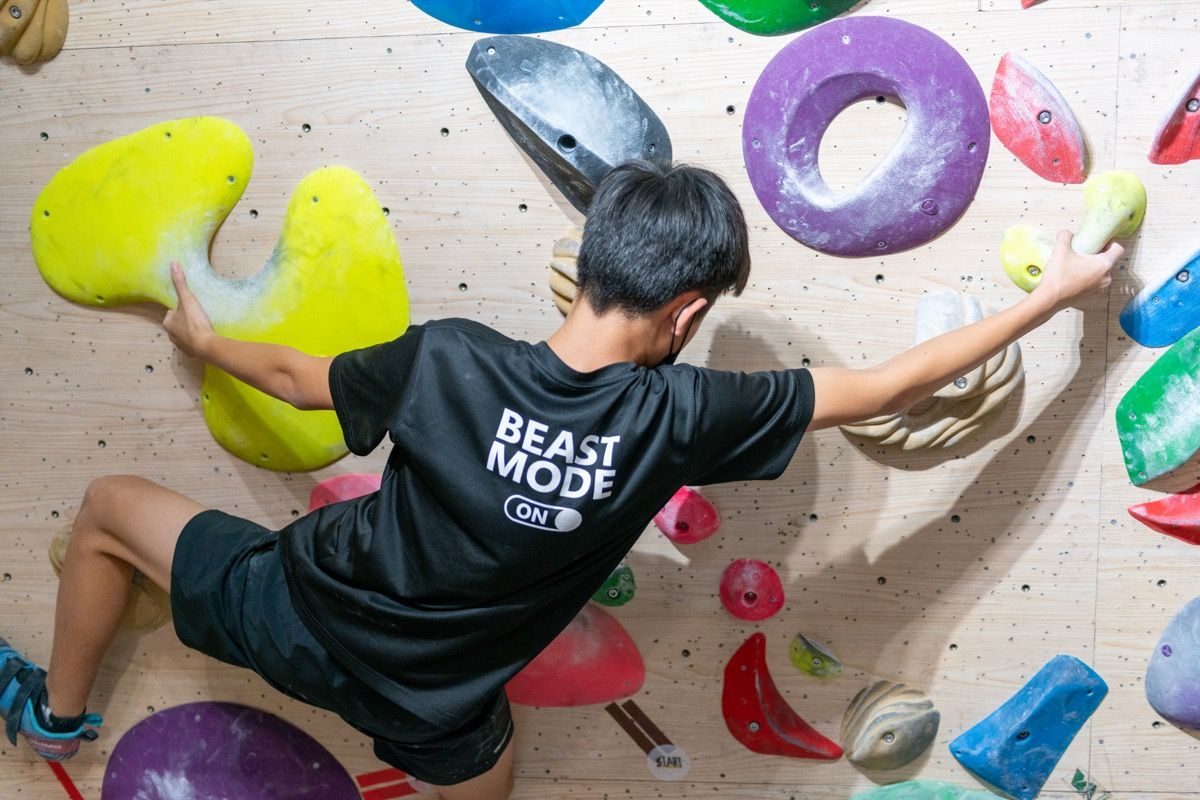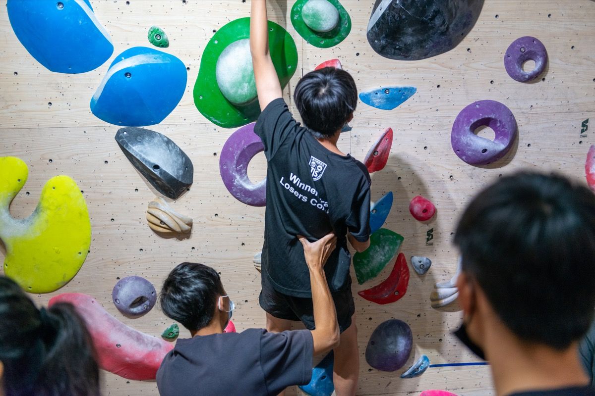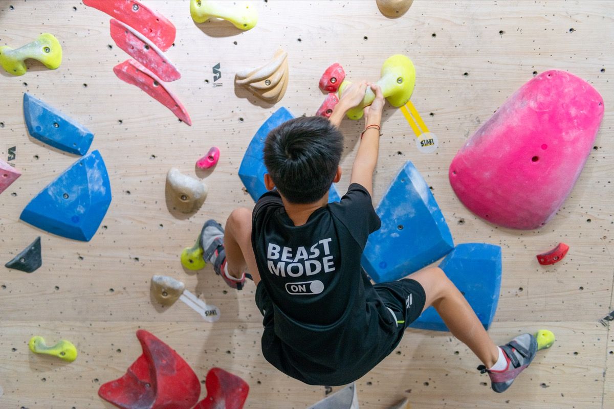 Taking on the colourful grips in front of her, Bernice takes the first steps and grabs on to the grips of the path of a V2 boulder. She quickly makes her way up and gets herself a meter off the ground in no time. She’s had some practice before: this is not the first time the grade 9 Outdoor Education students were there. But, there’s no perfect formula no matter how many times you’ve done this before and, halfway through, she realizes she needs to re-strategize. So, she stops, hanging in there, without releasing her grip while rethinking her path. She hears Mr Leguerrier’s voice from the back of her head, giving helpful instructions to lead her to a possible route. Finally, she’s “in the zone”, and a few moments later, with the strength of her legs, she pulls herself up, stretching her left hand to reach the top brown boulder and joining in her right hand. She hears Mr Leguerrier count “One...two...three!”, and that’s her cue to drop down after conquering the V2 path. Now, on to the next challenge.