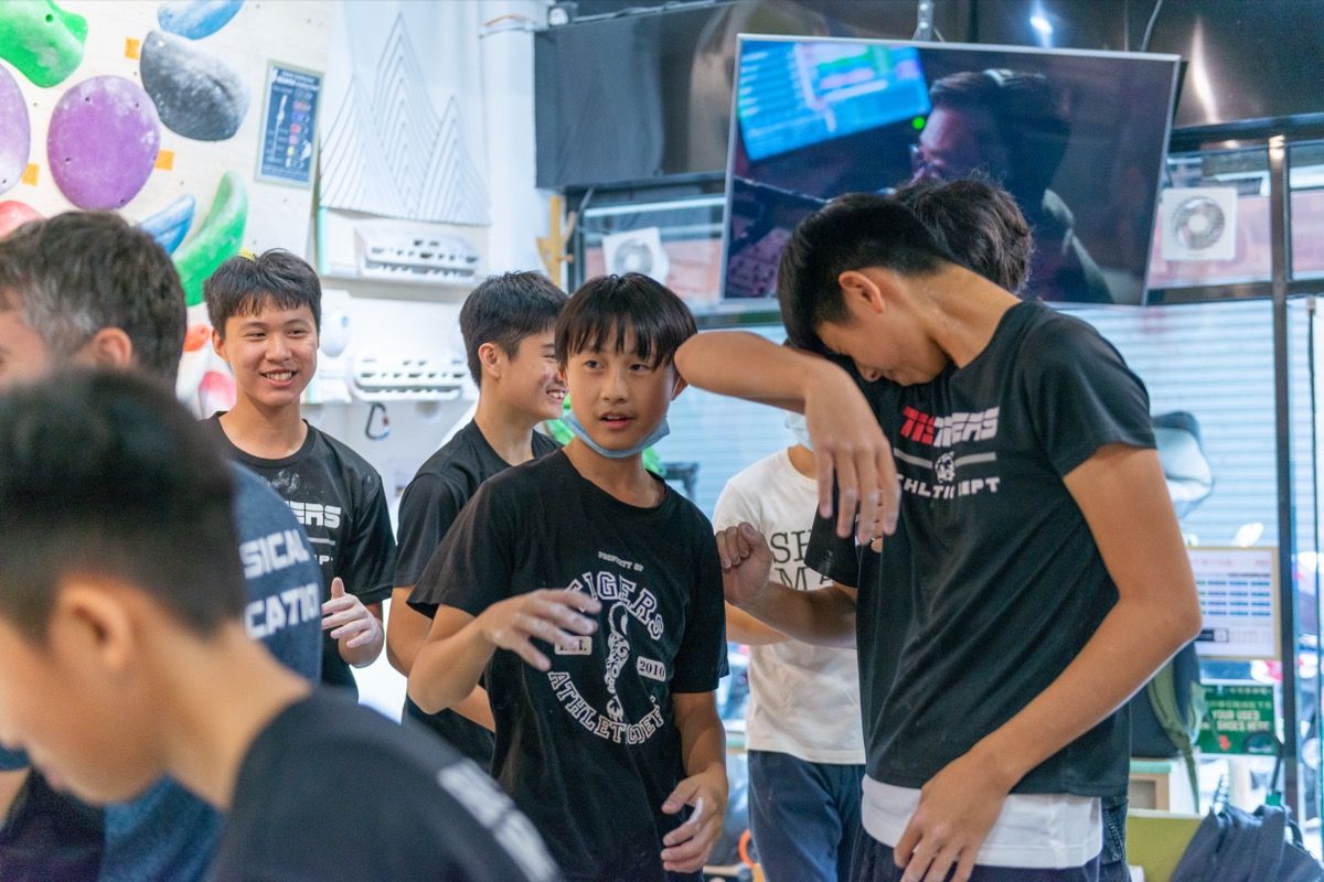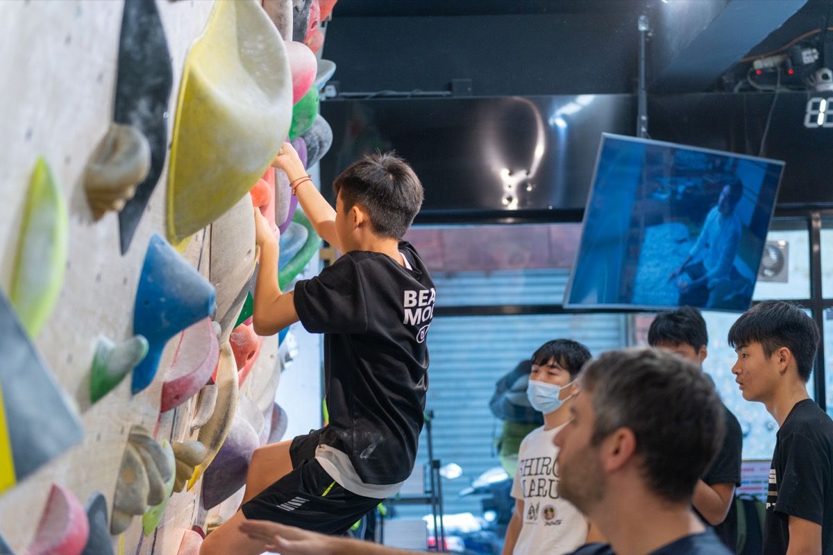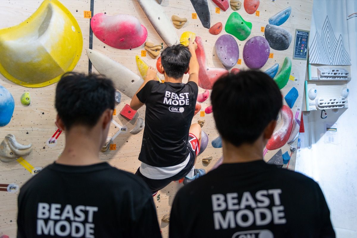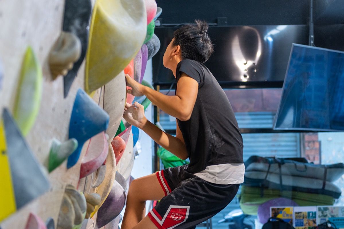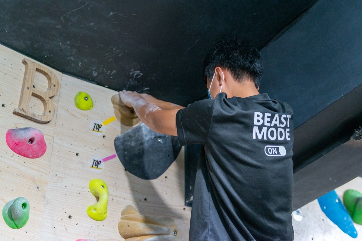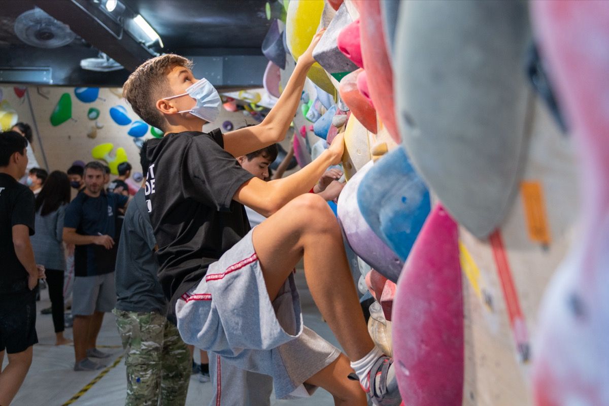 Taking on the colourful grips in front of her, Bernice takes the first steps and grabs on to the grips of the path of a V2 boulder. She quickly makes her way up and gets herself a meter off the ground in no time. She’s had some practice before: this is not the first time the grade 9 Outdoor Education students were there. But, there’s no perfect formula no matter how many times you’ve done this before and, halfway through, she realizes she needs to re-strategize. So, she stops, hanging in there, without releasing her grip while rethinking her path. She hears Mr Leguerrier’s voice from the back of her head, giving helpful instructions to lead her to a possible route. Finally, she’s “in the zone”, and a few moments later, with the strength of her legs, she pulls herself up, stretching her left hand to reach the top brown boulder and joining in her right hand. She hears Mr Leguerrier count “One...two...three!”, and that’s her cue to drop down after conquering the V2 path. Now, on to the next challenge.