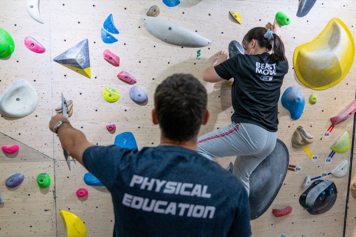A form of free climbing performed on small rock formations, boulder climbing is fun for these students while they have their flexibility, endurance, coordination, power and strength tested. These classes offer a highly motivational and supportive environment, with agglomerations of classmates around the same problem, each taking turns trying to reach the top via the path they continuously decide to choose while on the wall or suggested by their peers. The atmosphere is great and helps build confidence for these students in overcoming obstacles.