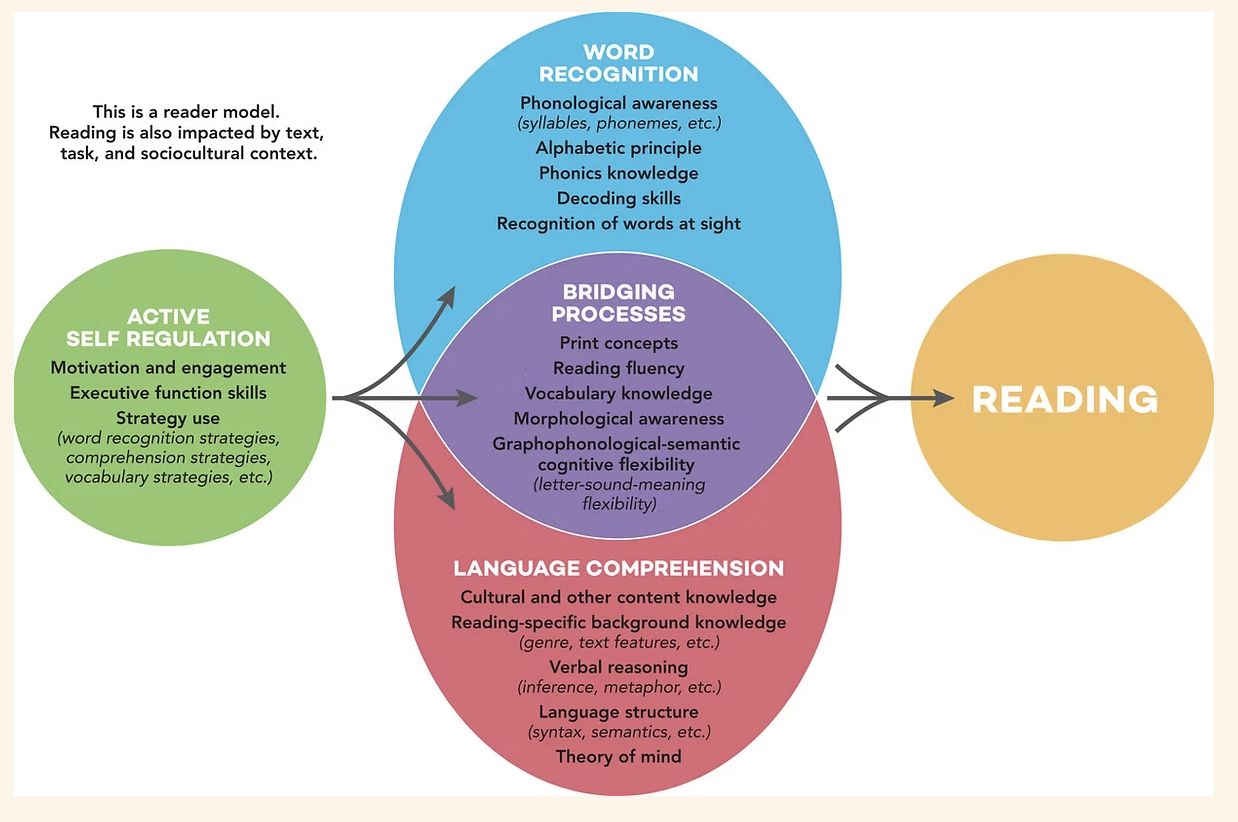 A more recent research called the Active View of Reading emphasizes that reading, like much of learning, is an active process. And that it starts with the readiness from the learner, including their motivation and executive function fully functioning, to engage the student in the learning process.