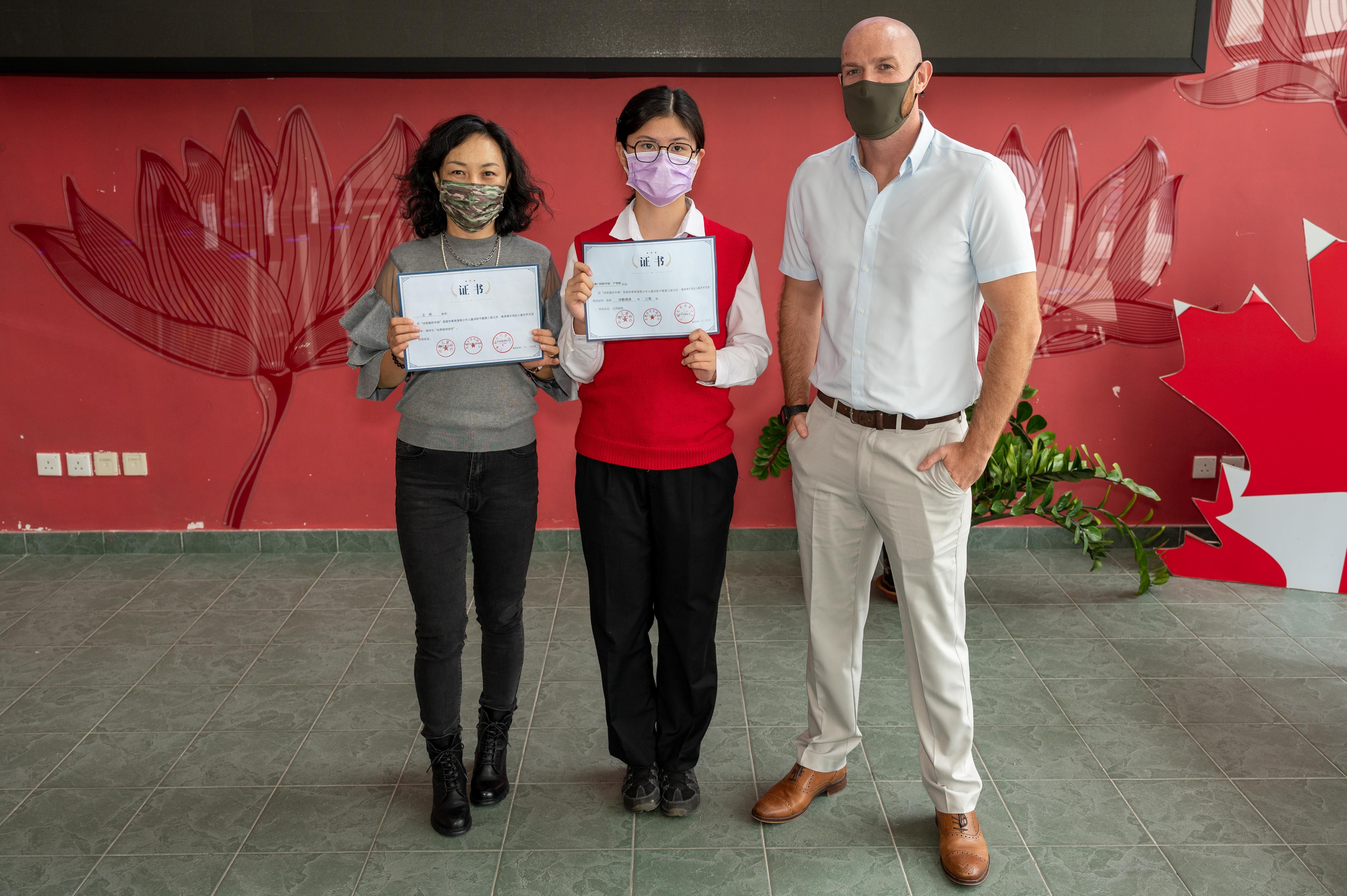 This is not the only feat Cloris has had in her Chinese Studies. Utilising her originality, Cloris took a creative approach to her homework assignment on the poem “Pass the Old Man’s Village” by the renowned Tang Dynasty poet Meng Haoran. She created a 4-minute video delicately reciting the poem and presented her analysis and interpretation. This unplanned submission was so impressive, it won 3rd place in the “China in Poetry and Paintings,” receiving coverage by Macao Daily once more.