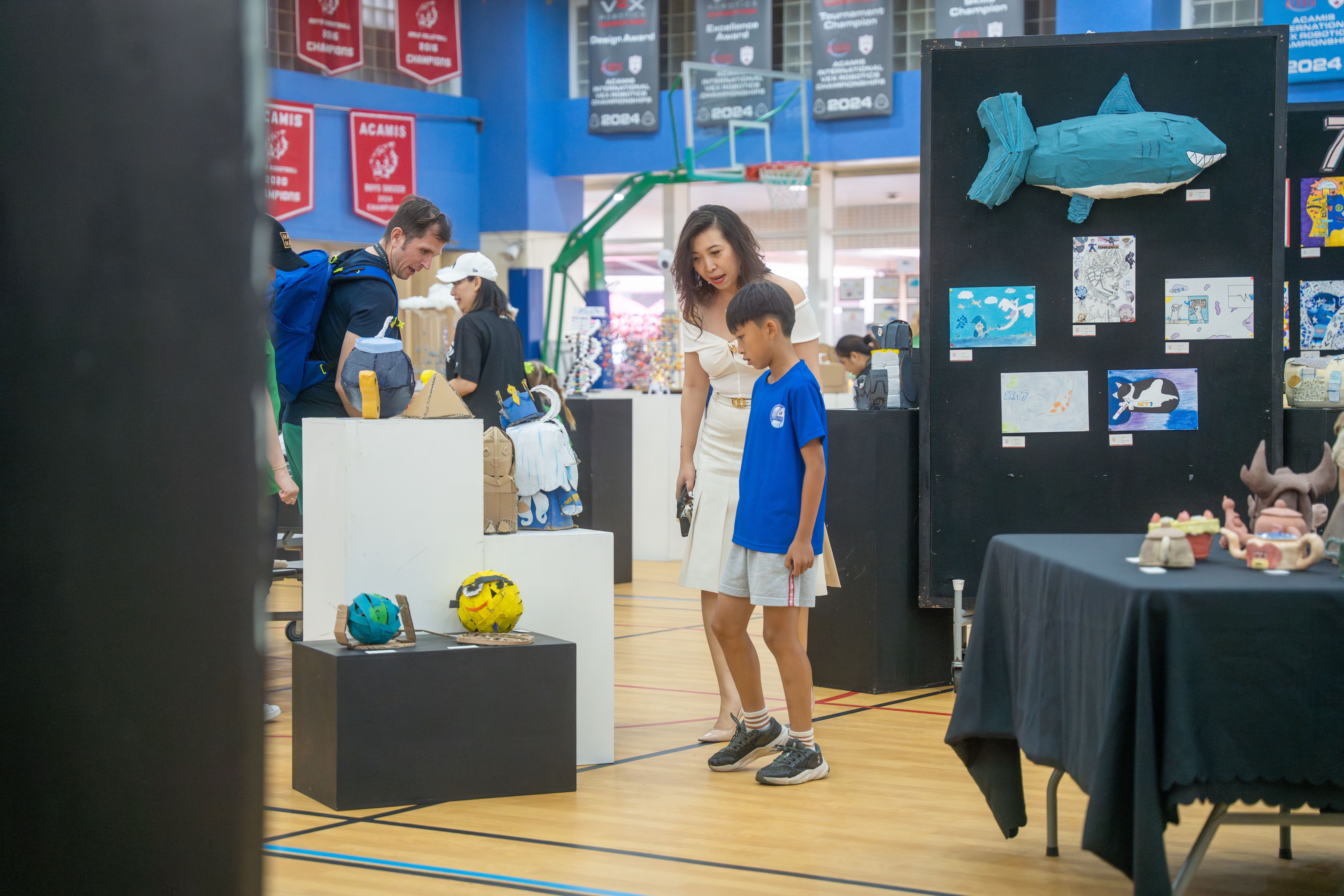 Throughout the evening, guests had the opportunity to explore projects produced over the year across various subjects. They enjoyed engaging interactive exhibits, hands-on demonstrations, and activities that highlighted the exceptional skills and creativity of our students. This dynamic showcase included a collection of paintings, sculptures, 3D printing, robots, and more, celebrating the diverse talents and interests of our TIS community. There were also a variety of games and activities, including tabletop mini golf and robotics demonstrations!