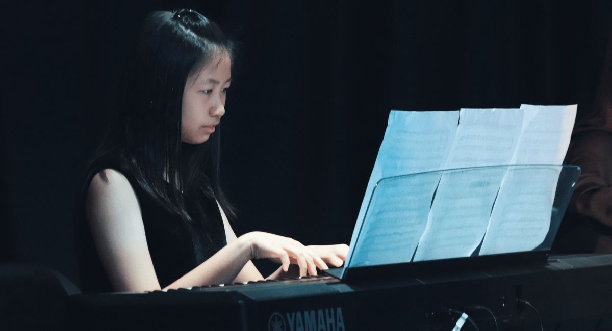 Two remarkable Grade 1 students showcased their exceptional talents to the audience's delight: Lonzo, our first performer started the evening with a joyous performance of an original poem, "Today is Going to be an Amazing Day," and set the tone for the evening. James, an award-winning pianist at such a young age, performed an original piano piece titled "Escape from the Cop." Twenty-one other acts followed, including Franky, from Grade 10, who amazed everyone by playing many instruments "simultaneously," and Grade 4 student Nirvana who sang a touching Chinese melody.