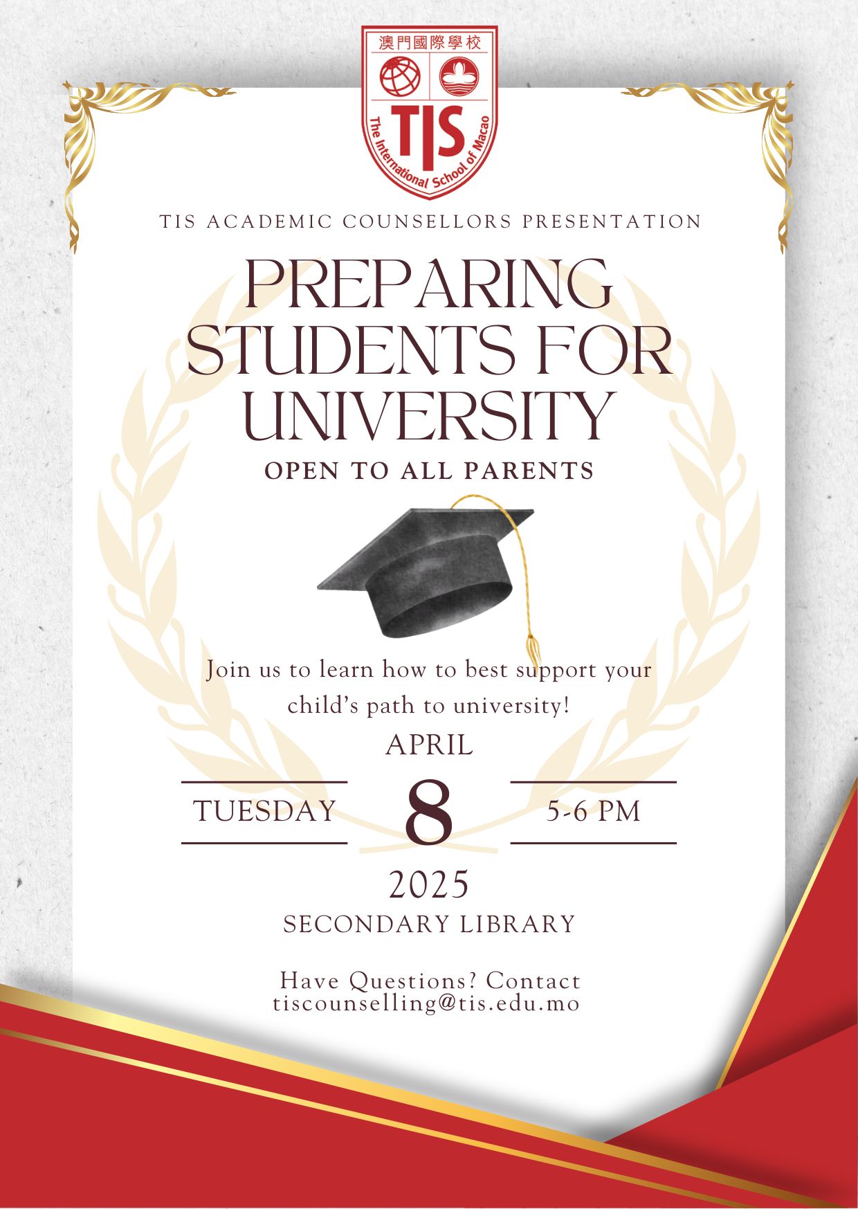 We hope to see you there! If you have any questions, please feel free to contact us at tiscounselling@tis.edu.mo.
