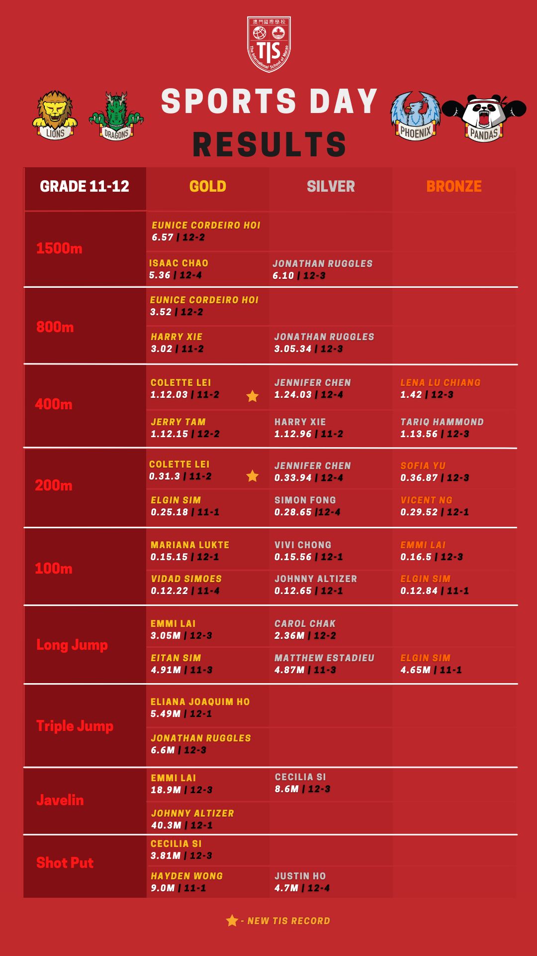 The atmosphere was buzzing with excitement as the M.U.S.T. field was filled with blue Phoenixes, yellow Lions, black Pandas and green Dragons. From long jump to triple jump, to javelin throw and shot put, the day hosted a variety of events that had everyone eagerly anticipating who would attain the best time, and perhaps even break a TIS record!