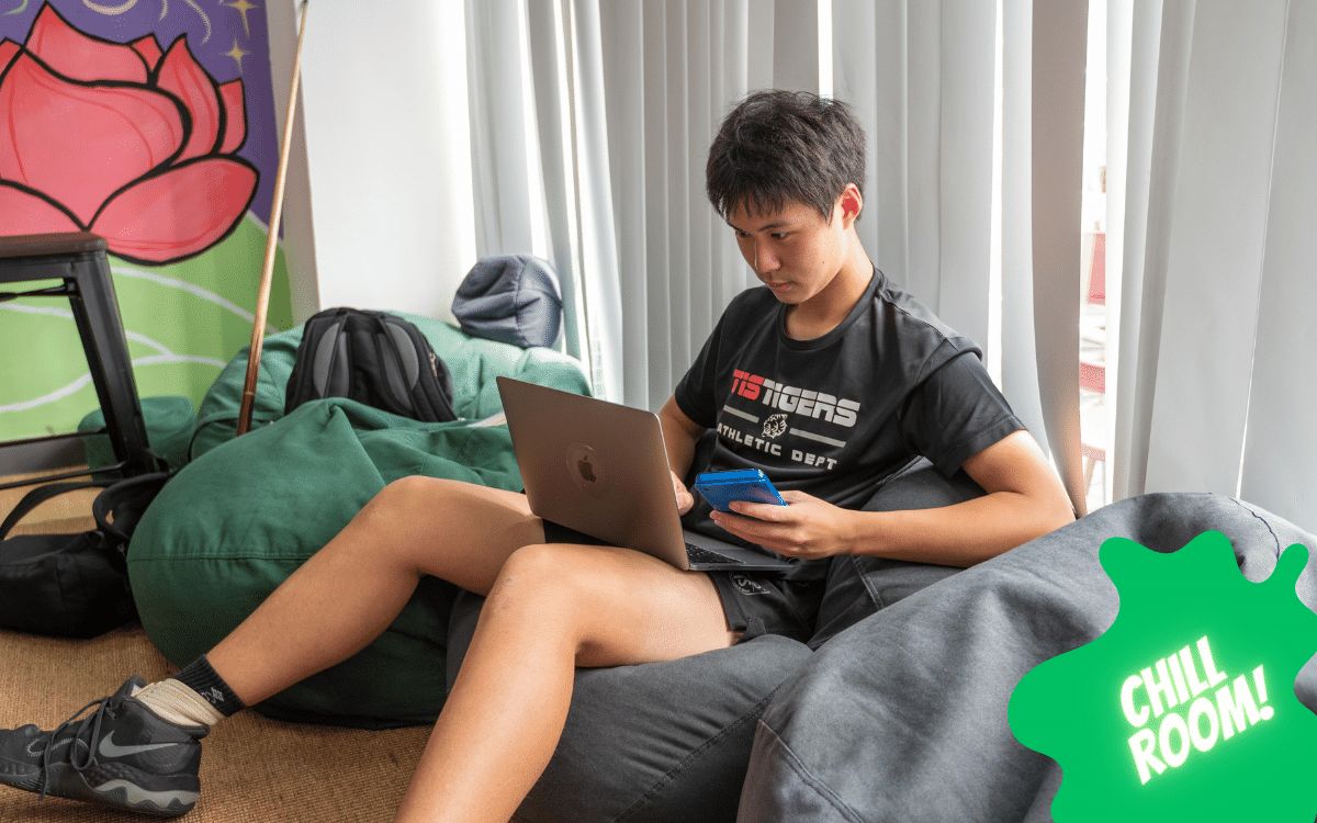 But the Chill Room is more than just a space to hang out and have fun. It’s also a space designed to promote mental health and well-being. The room is adorned with a beautiful mural created by the talented artists in our student community during Experience Week.