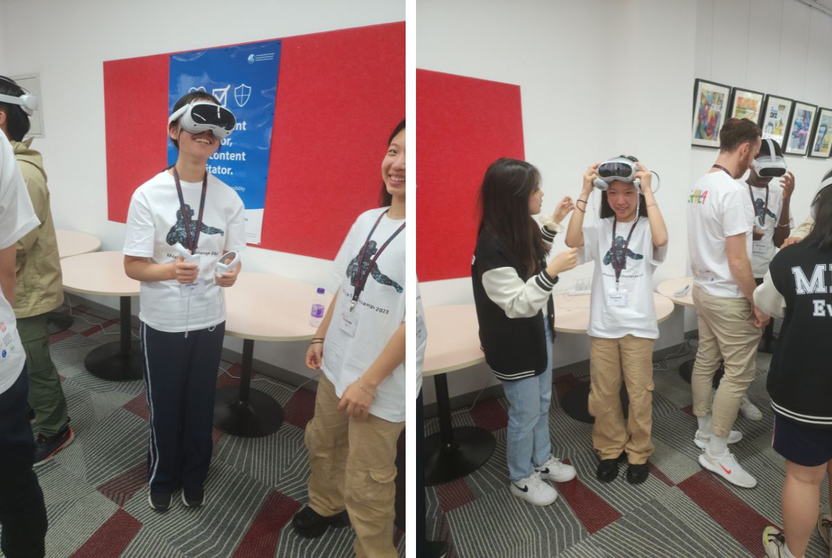 Recently, our Grade 10 students Elisabeth and Chi Hun, accompanied by Mr. Voykin, our Technology Department Head and Ms. Irvine, our Secondary CTF & Multimedia Teacher, embodied our commitment to innovation and experiential learning by participating in the 2023 XR Asia Cup Challenge. This event, hosted by The International School of Tianjin in collaboration with the Global Association for Immersive Learning Advancement (GAILA), provided an excellent opportunity for students to showcase their passion for immersive learning experiences.