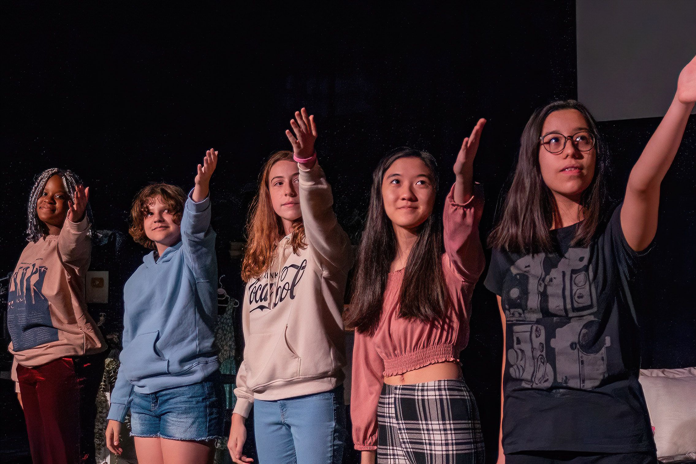 This production involved more than thirty middle school and high school students. Each in different roles as actors, musicians, singers, stage managers, designers, lighting, sound, costume, publicity, set production and box office managers. The entire cast and crew staged the new play in record time, mounting the show in four weeks instead of the usual eight - a fantastic effort showcasing the resilience and flexibility of our students.