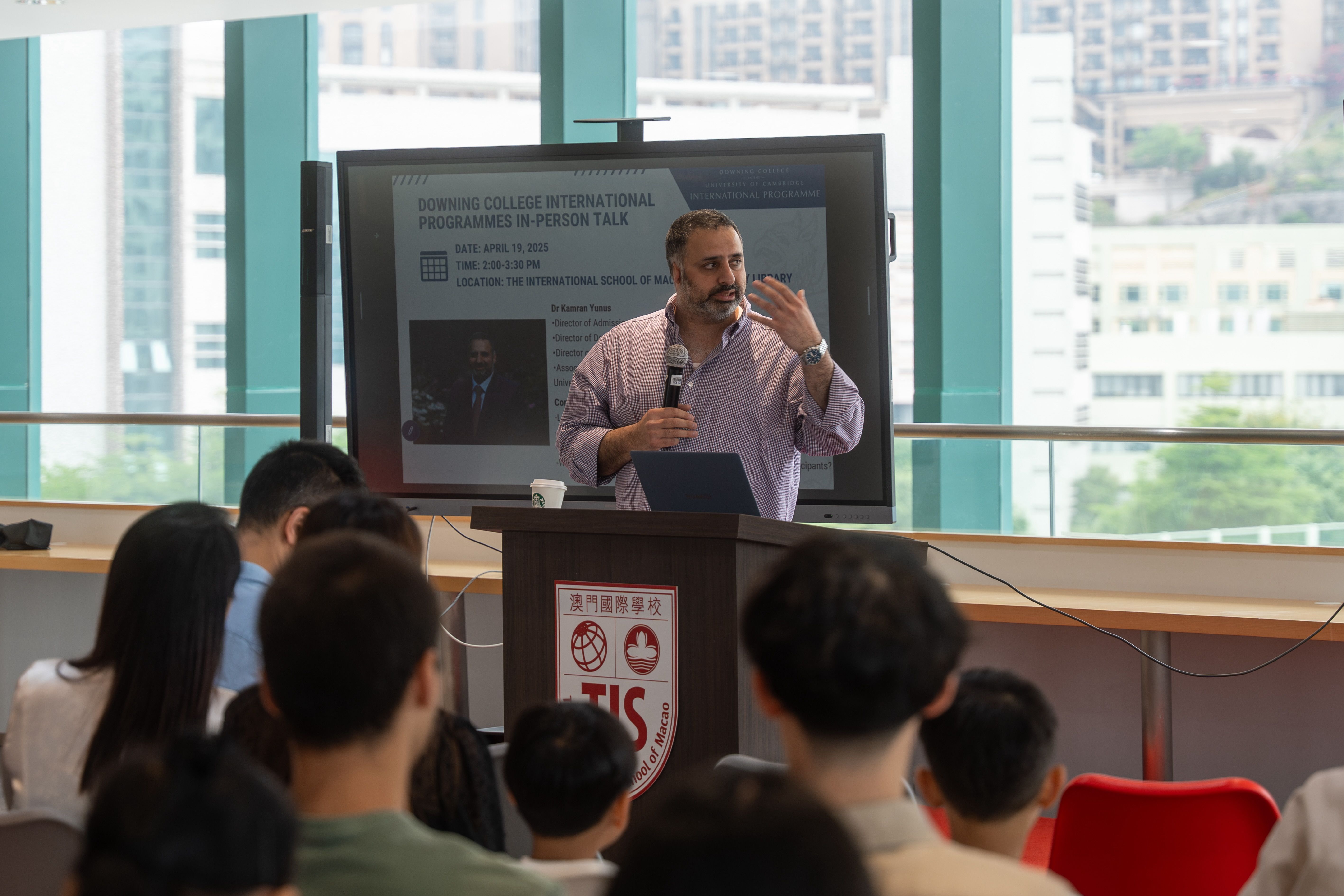 The International School of Macao (TIS) held an information session on Saturday, April 19, 2025, featuring Dr. Kamran Yunus, the Director of Admissions and International Programmes at Downing College, University of Cambridge. With over 100 people in attendance, this event provided a unique opportunity for students to engage directly with admissions experts, fostering a valuable connection between students in Macao and one of the world’s leading institutions of higher education.