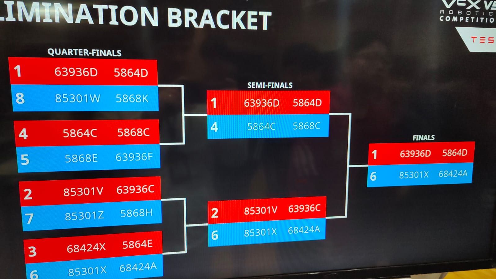 All other V5RC teams successfully reached and captained an elimination round alliance (playoffs)! Team V went undefeated in the qualifiers and faced Team X in a thrilling semi-final showdown